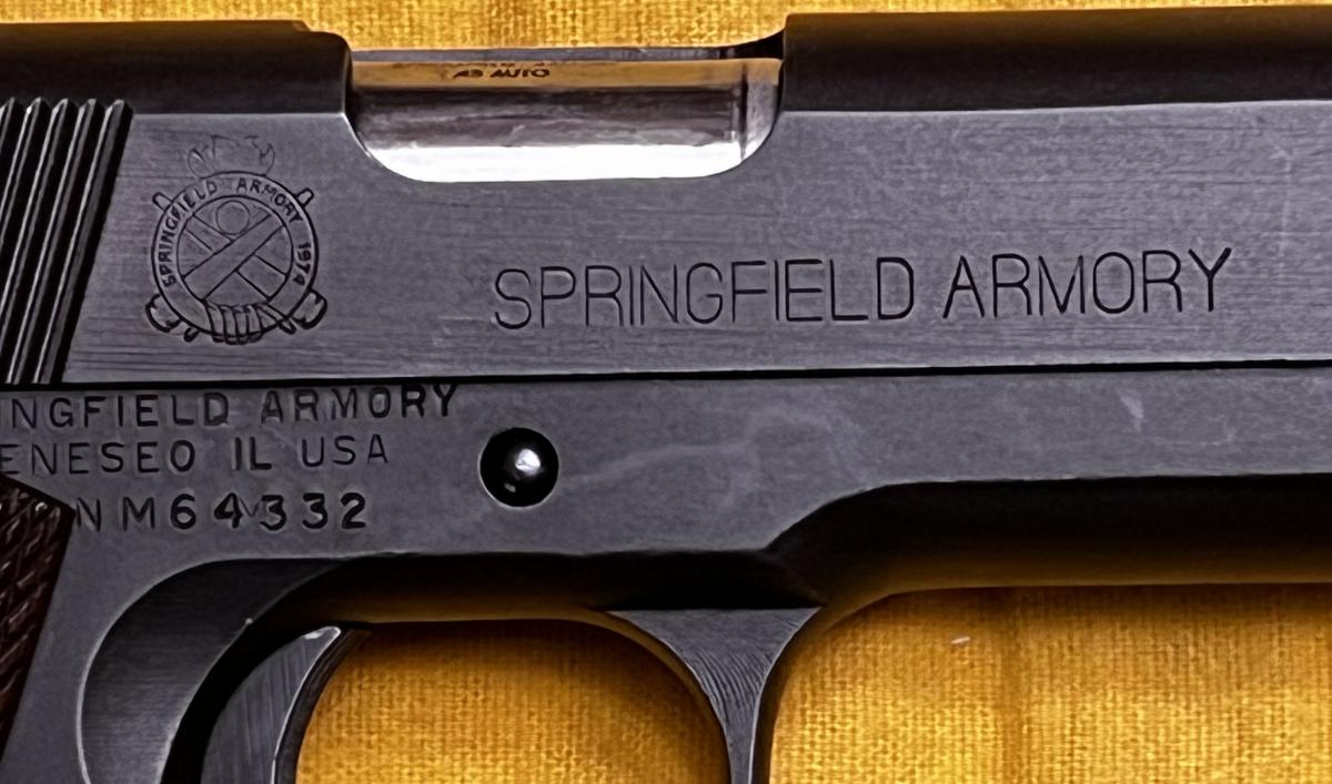 Singular pistola inmaculada SPRINDFIELD ARMORY Cal 45 ACP Fosfatada de origen! de fines de los años 70 fabricada en usa para el ARMY junto con las Colt para equipar a las fuerzas americanas hasta la aparecíon de la Beretta 92F.