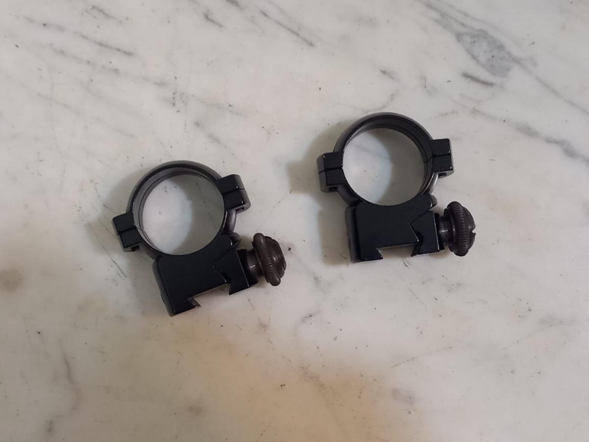POR FAVOR SÁQUESE TODAS LAS DUDAS, CONSULTE ANTES DE COMPRAR, LE RESPONDERÉ CON GUSTO. MUCHAS GRACIASPor encargue de un amigo, pongo a vender un lote de anillas/montaje. Ambos son para rieles de 11 mm, uno de ellos que pertenecía a una mira alemana marca Haweka(Foto 2) es para miras con tubo de 18 mm de diámetro y totalmente construido en acero. Las otras son anillas son de aluminio de muy buena calidad y para miras con tubo de 22 mm (7/8) que venían de fábrica con una mira Bushnell Rimfi...