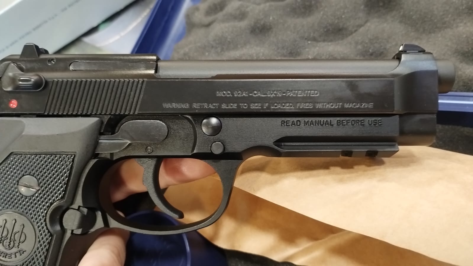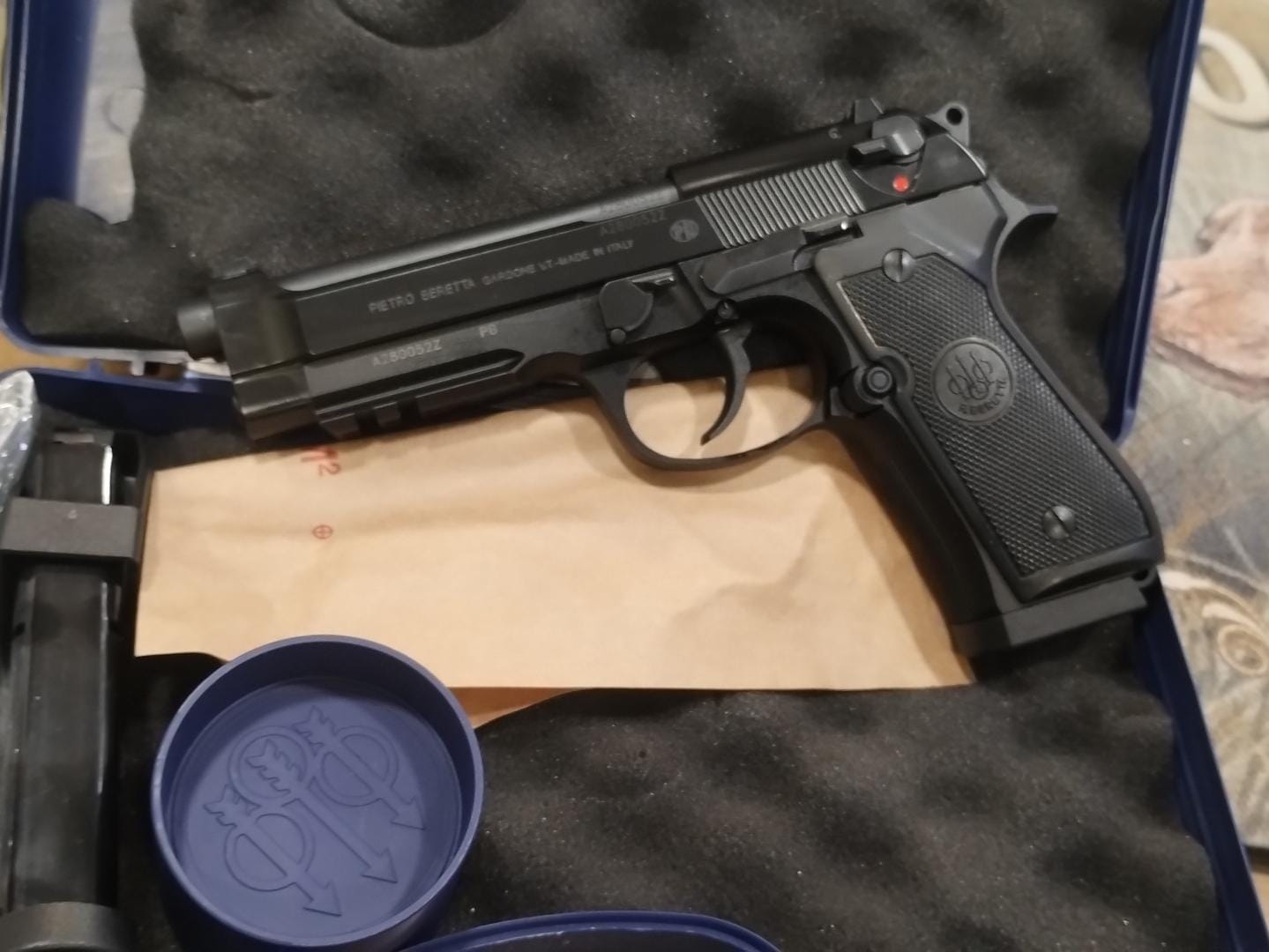 Viene con 4 cargadores, dos de 17 y dos de 18 mecgar. Todo nuevo, se usó uno solo. Tiene 40 disparos efectuados.