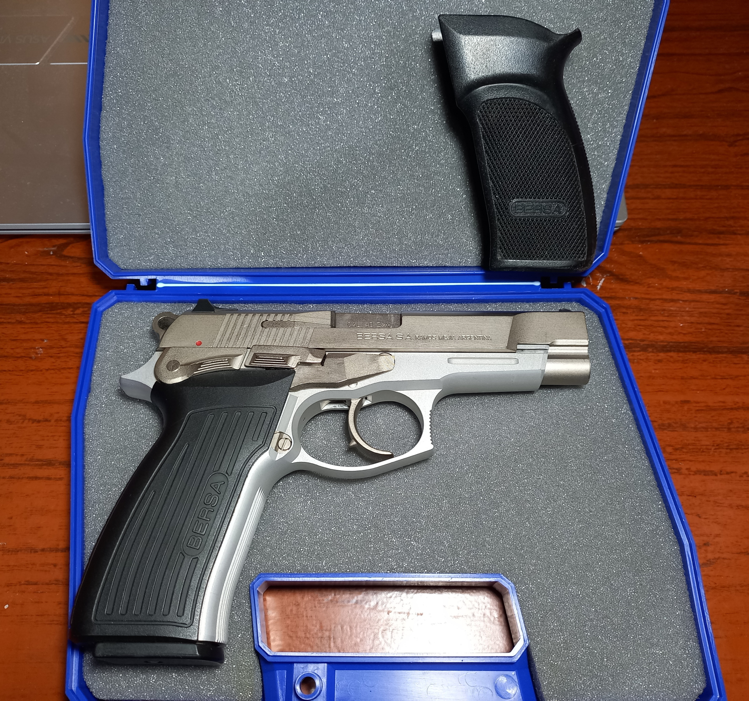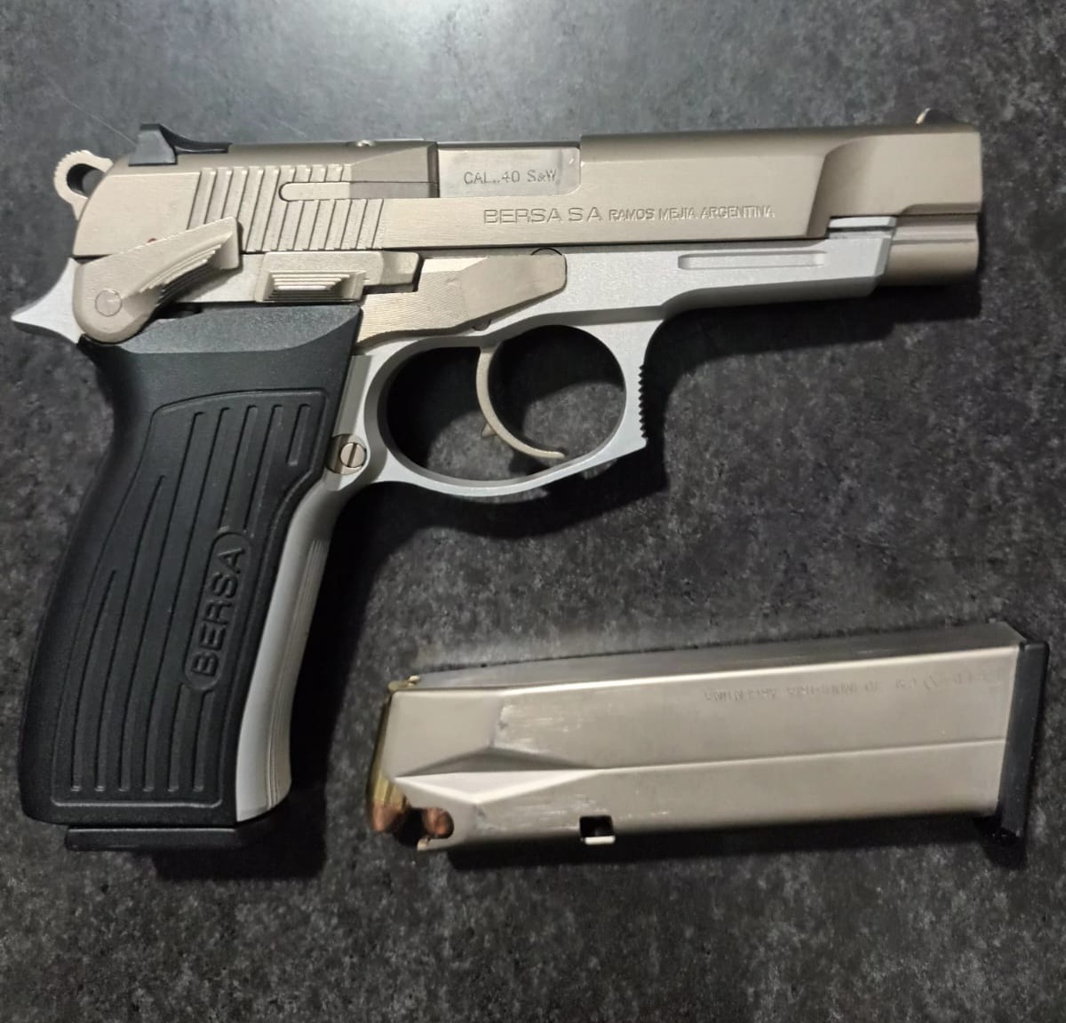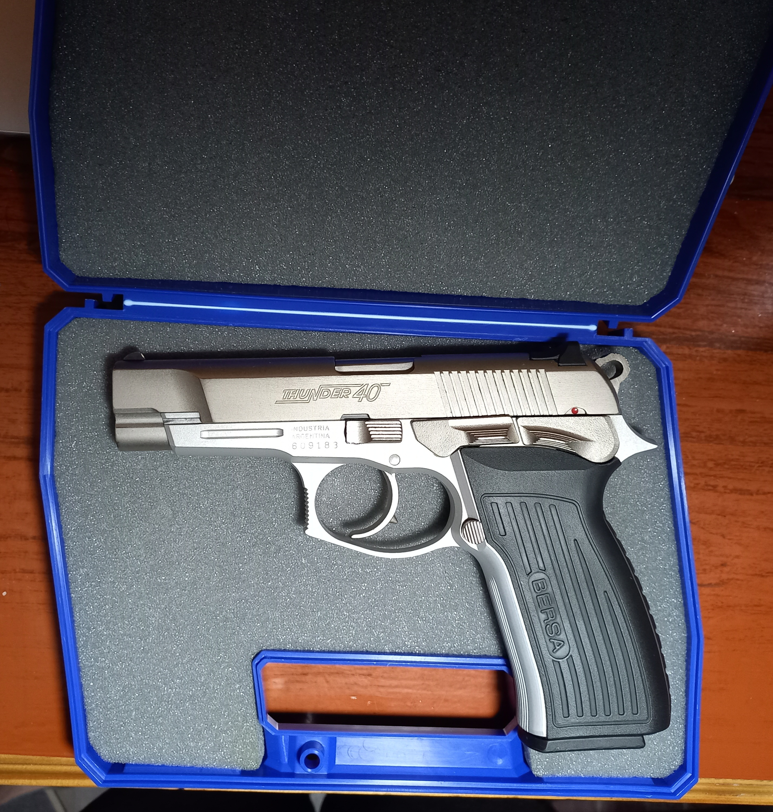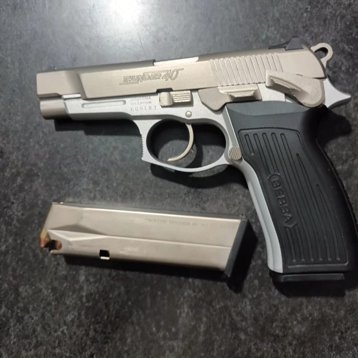 Vendo Bersa Thunder 40 niquel con estuche, cargador adicional y juego de cachas extras. Apto para tramite express. Posee CUIM. No se realizan envios.