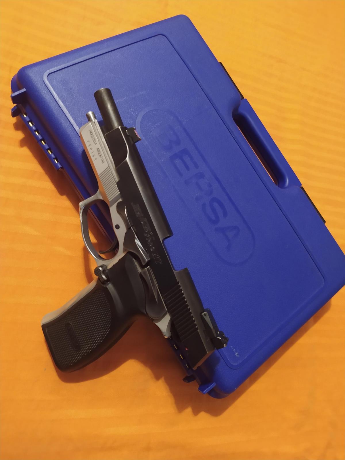 La estas mirando, arma en excelente condición, con kit completo alivianador del sistema de disparo instalado y sus cinco cargadores Made in Italy impecables, ademas de maletin de transporte original.