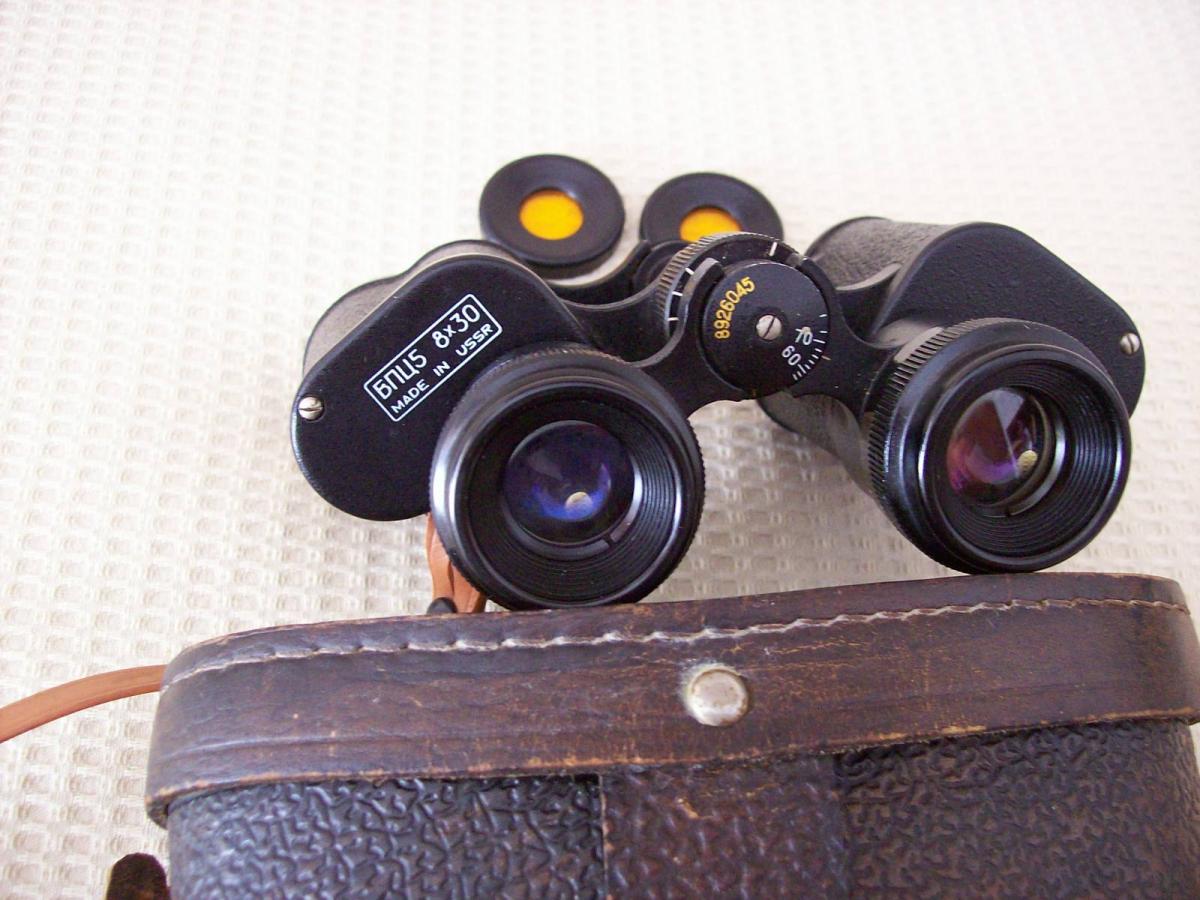 Binocular KOMZ Modelo БПЦ5 8X30 . Fabricado en el año 1989 en la ciudad de Kazán (Tartaristán, URSS) por la prestigiosa factoría KOMZ. Es un binocular de prestaciones excelentes, con gran definición y transparencia. Pequeños objetivos a largas distancias se pueden percibir con gran nitidez, pero en situaciones de escasa luz es donde verdaderamente marca la diferencia con su alta calidad. La factoría KOMZ se especializa en instrumentos ópticos con fines militares, aunque este modelo se fabricó para uso civil en 1986 . Se halla en perfecto estado mecánico y óptico. Sus lentes se hallan limpias, sin rayas ni manchas y perfectamente colimadas. Mecánicamente está perfecto y responde con suaves movimientos. Etéticamente se halla igual a nuevo. Para reglar las dioptrías, se hace con un dial central y luego se regla para el ojo derecho desde el ocular derecho. En la tapa posterior del eje pivotante central, para regular la apertura de la distancia entre ojos, tiene estampada una escala de 70-0-60 grados y el número serial 8926045 (año de fabricación 1989). En la tapa posterior del tubo izquierdo tiene la leyenda “БПЦ5 8X30”, Made In USSR y el logo KOMZ. Ideal para el apostadero, aunque las condiciones de la noche sean malas. También brinda excepcional servicio portándolo para cazar en la llanura o la montaña, dado su tamaño pequeño y su bajo peso. Su gran calidad de óptica brinda similares prestaciones que binoculares de marcas muy conocidas y muchísimo más costo. Se entrega con estuche de cuero con correa (original), correa de cuero para cuello (NO original) y sus dos filtros originales ocre para usar en situaciones de resplandores muy intensos (Fotos 8, 9 y 10) Sus medidas son: 16x12x5,5 Cms.
