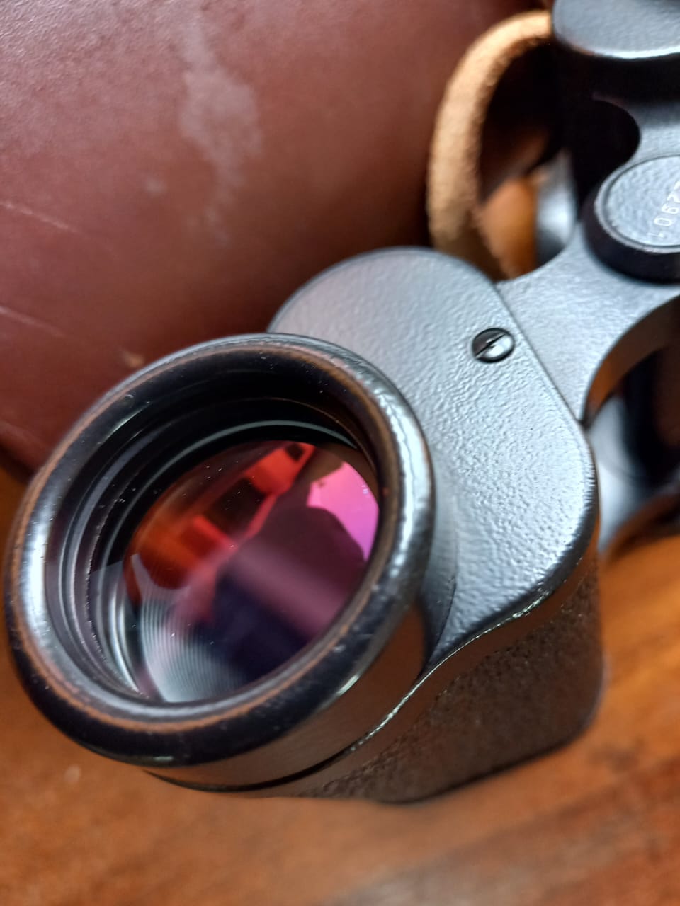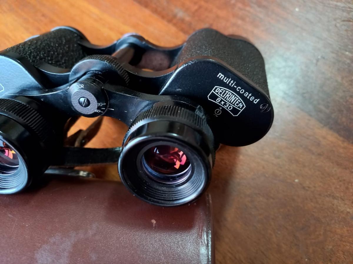 Binocular alemán CARL ZEISS modelo Deltrintem 8X30 “1Q”* Multi-Coated, fabricado en la ciudad de Jena, Alemania Oriental en el año 1978. El binocular se halla usado, en estado inmaculado, igual a nuevo. Perfectamente colimado con lentes y prismas sanos y limpios, binocular de altísimas prestaciones . Los instrumentos Zeiss son probablemente lo máximo logrado en material de óptica. La calidad de la materia prima, el pulido y los distintos tratamientos a los que se someten estos cristales, garantizan la más perfecta transparencia y definición que pueda lograrse. Por su año de fabricación se puede deducir que, además de que los materiales empleados en su manufactura son de primerísima calidad, los multitratamientos de sus lentes y prismas entregan una imagen nítida, definida, de buen contraste y colores naturales. Los mecanismos funcionan a la perfección, con muy suaves movimientos. Para la adaptación se enfocan con un dial central. Para enfocar el ojo derecho individualmente, se hace mediante su ocular regulable y con escala. Sobre la tapa trasera del tubo izquierdo, tiene las leyendas “CARL ZEISS JENA” y sobre la del tubo derecho “ MULTI-COATED” - “DELTRINTEM 8X30- “1Q”*. En la tapa delantera de su eje pivotante central tiene estampado su número de serie 4.922.901 y en la trasera una escala para la graduación de la apertura de los tubos y “DDR” (Deutsche Demokratische Republik). Se entrega con su estuche de cuero con correa de transporte y su correa de cuello todos elementos originales de fábrica y en excelente estado. Sus medidas son: 16X11,5x5,5cms. Su tamaño es muy cómodo para la llanura o el rececho en el monte y su calidad de visión lo hace muy apto para el apostadero.