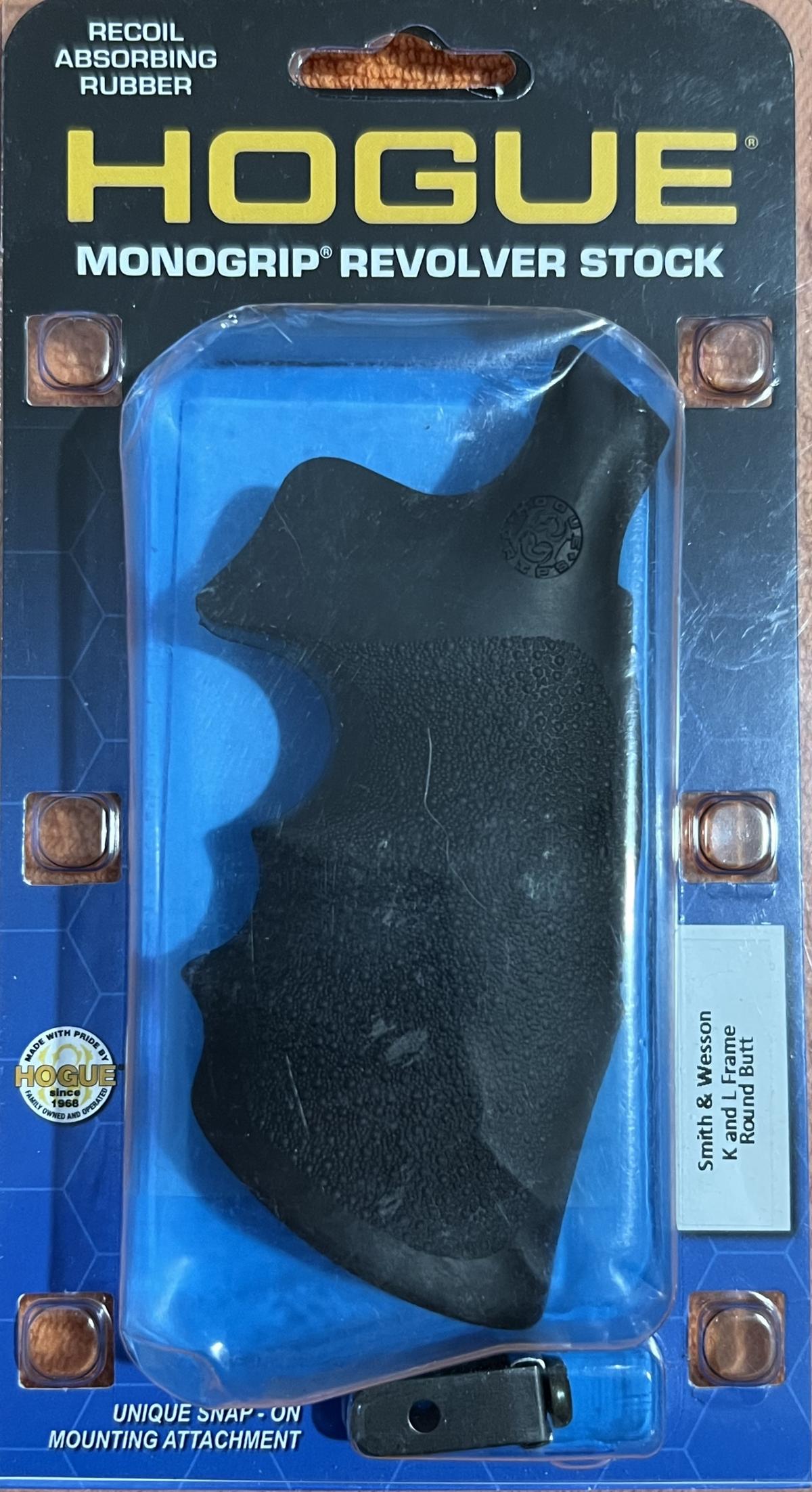 CACHA MARCA HOGUE MONOGRIP, PARA REVOLVERES MARCA SMITH & WESSON DE FRAME K y L ROUND BUTT CONVERSION SQUARE BUTT PARA MODELOS: 10, 12, 13,19, 64, 65, 66, 547, 581, 586, 681, 686.  NUEVAS Y SIN USO EN SU BLISTER ORIGINAL CON SUS INSTRUCCIONES, DE EXCELENTE GRIP. USD70