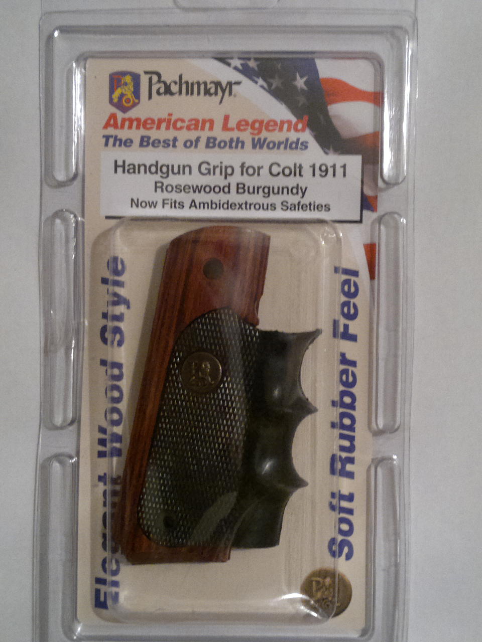 CACHAS MARCA PACHMAYR, EN MADERA Y GOMA, TIPO PANELES CON EXCELENTE SEGRINADO. PARA PISTOLAS COLT 1911, FM (SISTEMA COLT 1927), NORINCO 1911 Y TODOS SUS CLONES. MADE IN USA. NUEVAS A ESTRENAR DE EXCELENTE GRIP. USD85