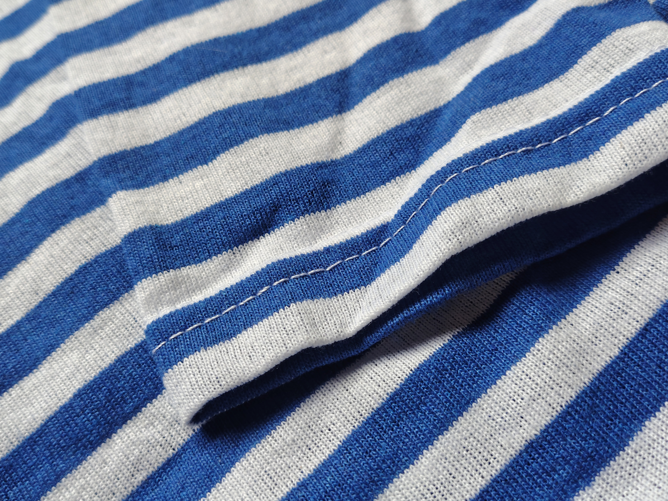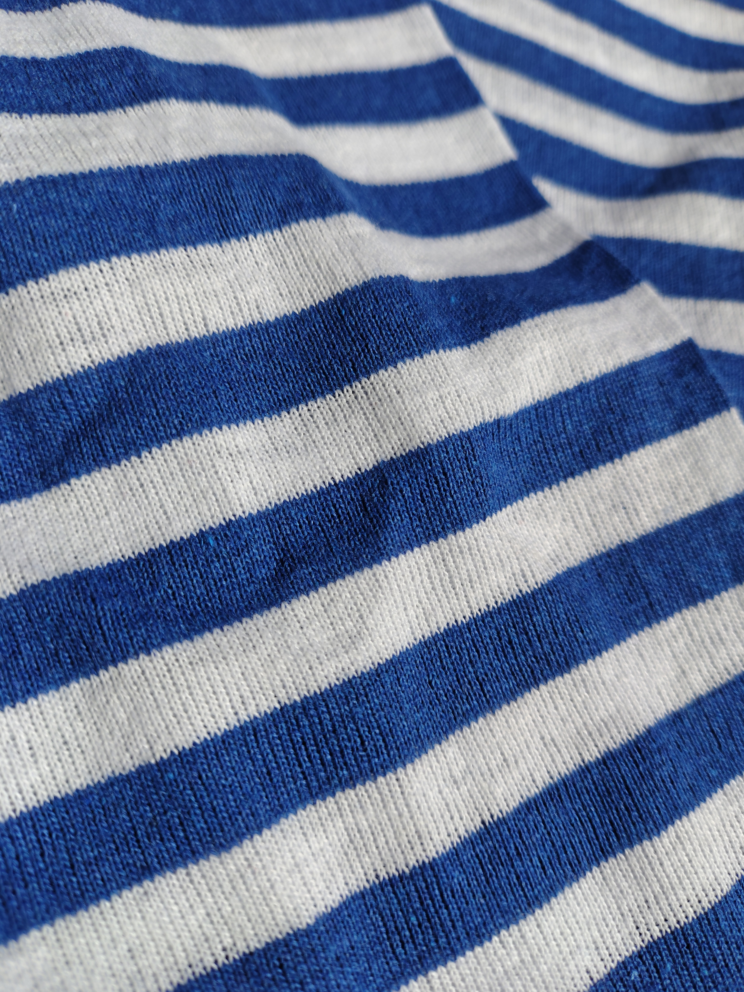 Las rayas en la tela se obtienen tejiendo hilos azules y blancos y no teñyendo.