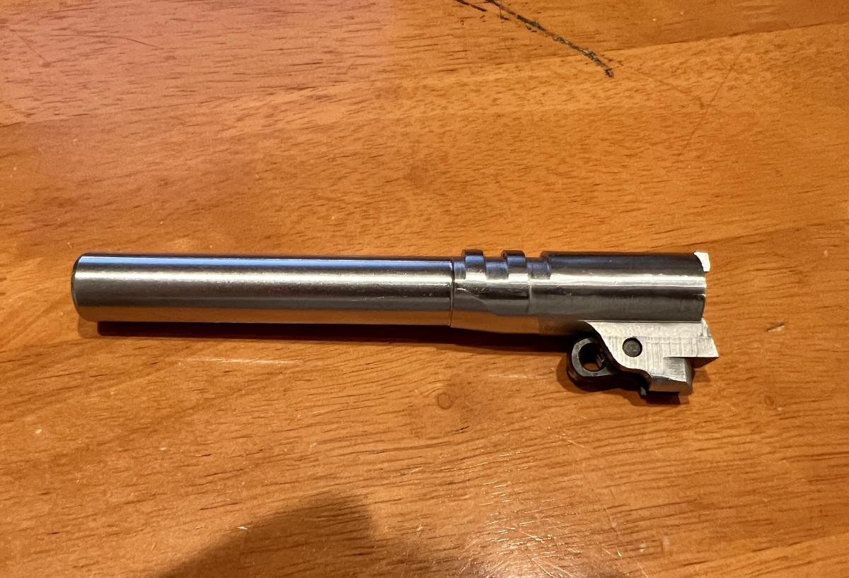 Perdón. Me olvidé decirle que el cañón .45 que ya tiene está con el doble sistema cadeneta-fresado y rampa porque de esta manera dispara casi cualquier tipo de munición. Por supuesto puntas de plomo