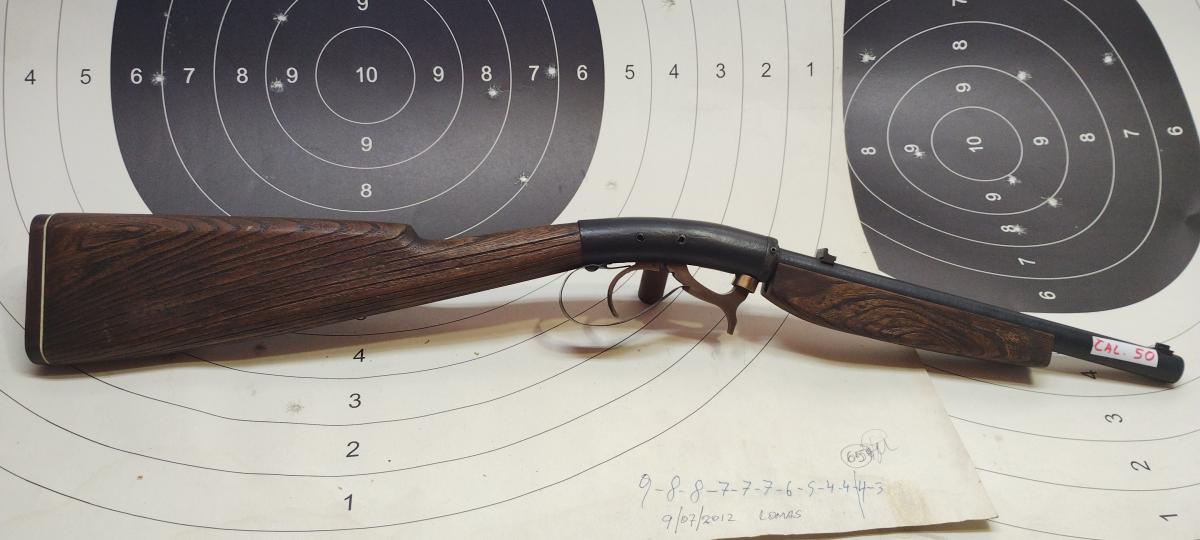 Carabina Goliat underhamer cal 50, cañón estriado, fabricada x Saverio Bonazza, muy buen estado,tiene multi estrías c/ giro rápido 1:28', especial para maxibala hacemos envios x Oca, Credifin y Vía Cargo