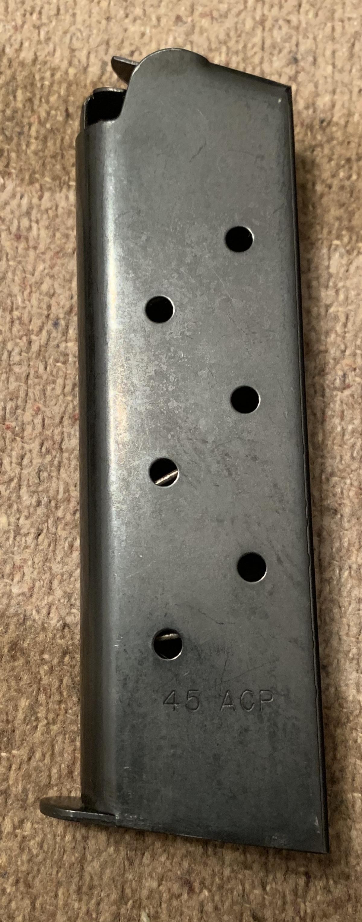 CARGADOR ORIGINAL PAVON MARCA COLT, DE 8 MUNICIONES CALIBRE .45 ACP, PARA PISTOLAS COLT 1911, FM (SISTEMA COLT 1927), NORINCO 1911, TAURUS 1911, TANFOGLIO 1911 Y TODOS SUS CLONES, ASI TAMBIEN COMO BALLESTER MOLINA. NUEVO A ESTRENAR.