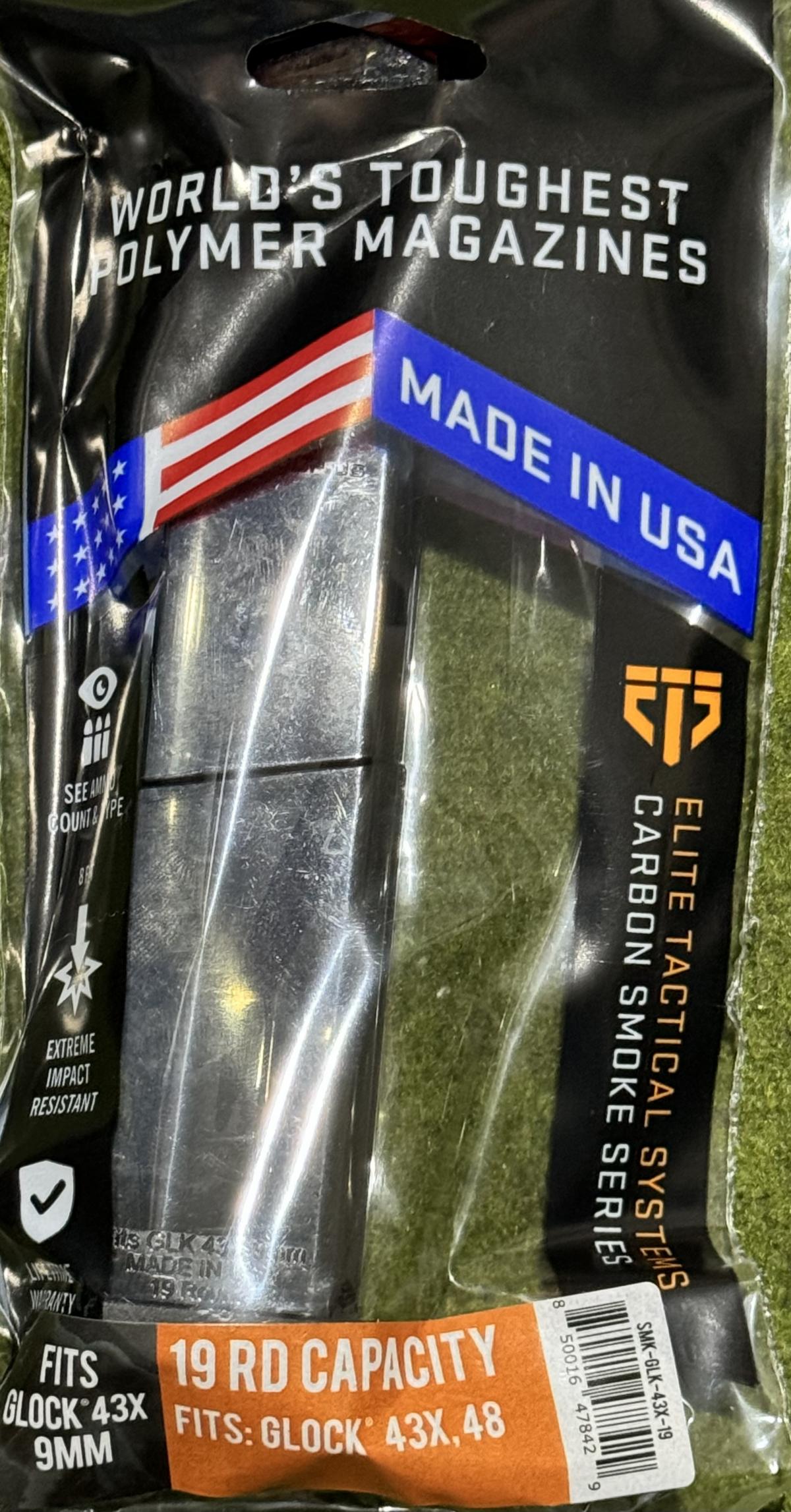 CARGADOR MARCA ETS, DE 19 MUNICIONES CALIBRE 9 mm. PARA PLATAFORMA GLOCK GEN 1-5 O RUGER PC9. NUEVO A ESTRENAR.
