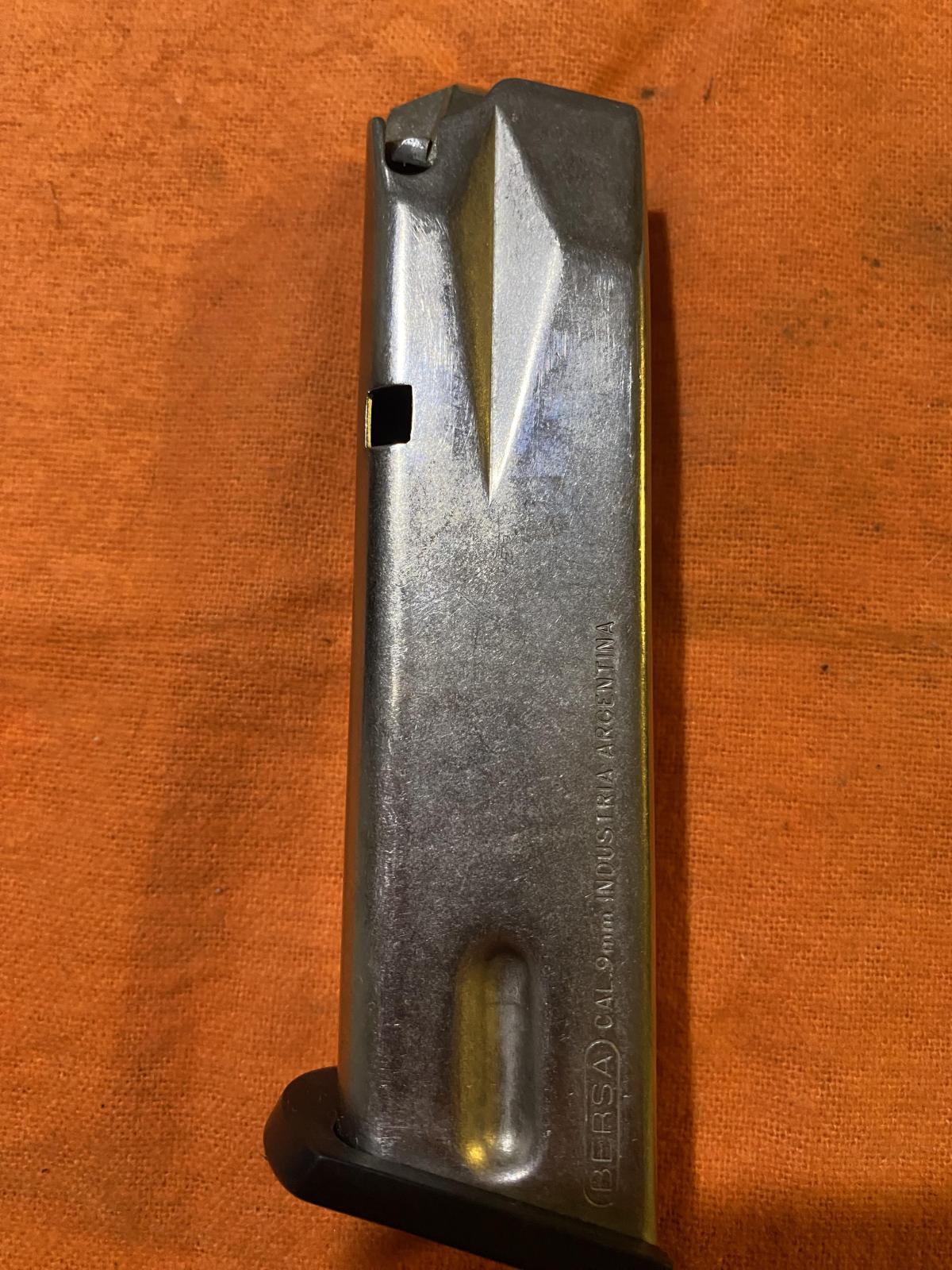 Cargador para Bersa Thunder 9 mm, Acero inoxidable, tela elevadora metálica. Impecable. Escucho Oferta por lote completo de todos los cargadores publicados.
