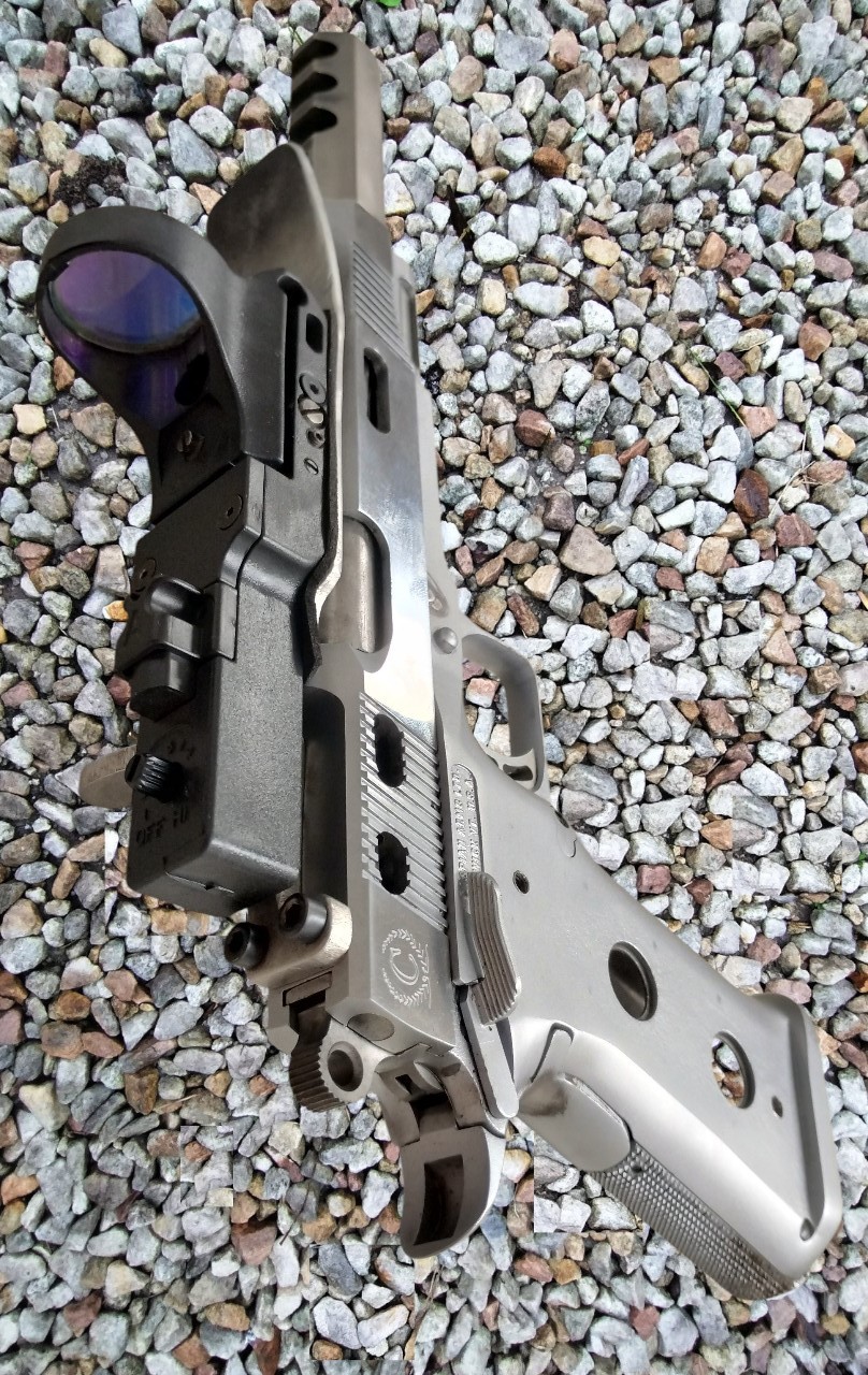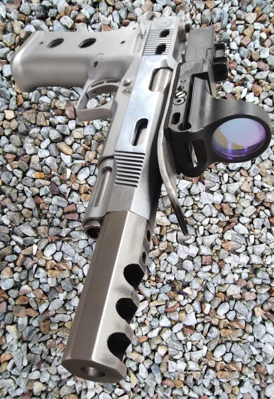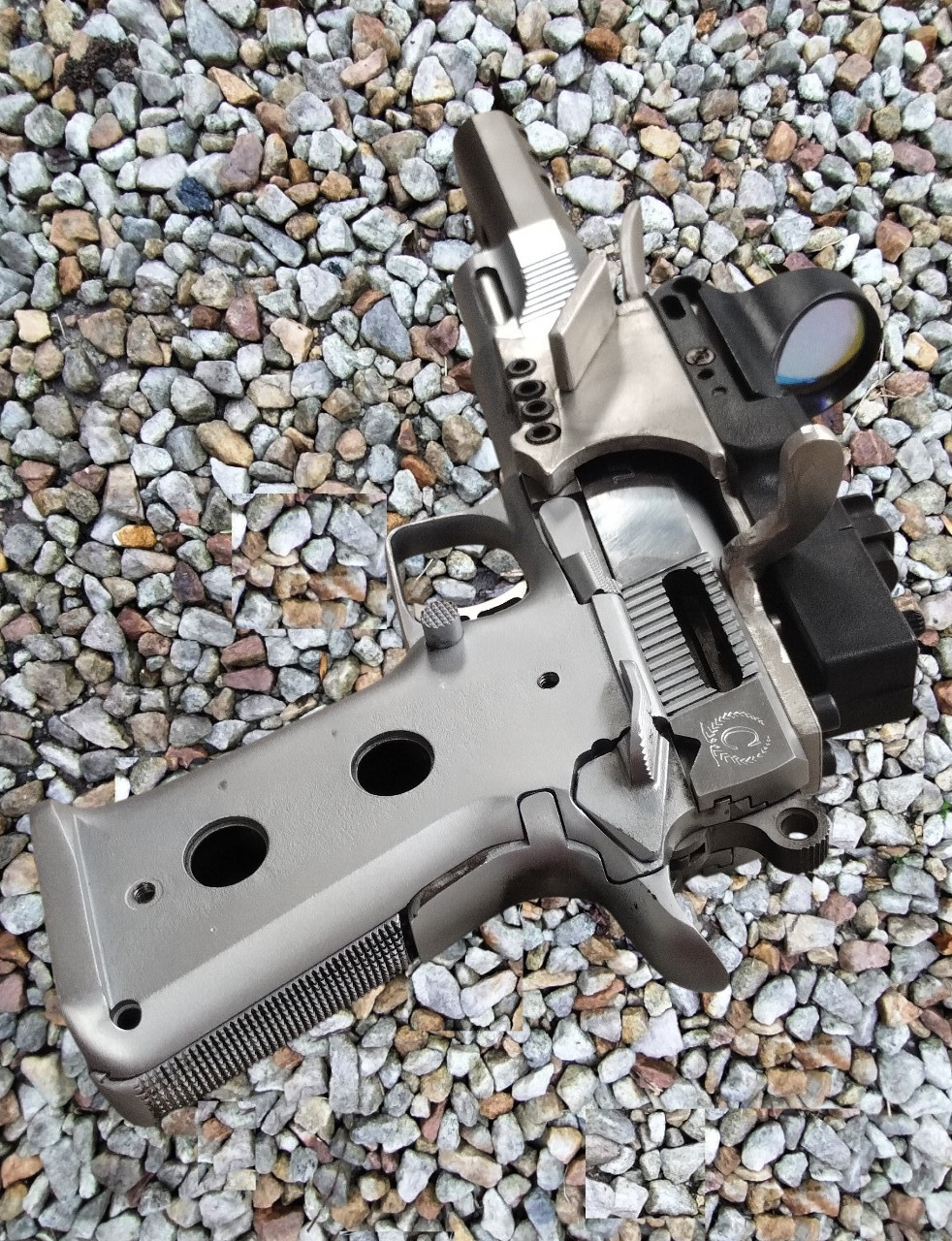 CALIBRE .38 SUPER AUTO RECAMARADA EN 9mm. EN EL ESTADO QUE SE VE EN LAS FOTOS. PARA FACTOR MAYOR. CON 2 CARGADORES DE 17 Y 1 CARGADOR DE 24. LA MIRA ES GENÉRICA.
