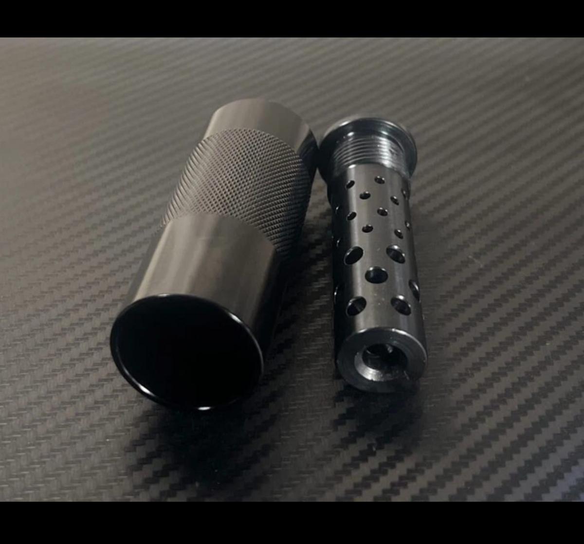 Puede usarse solo como compensador o agregar la carcasa exterior lo que hace que el sonido salga hacia adelante aliviando los oidos del tirados.