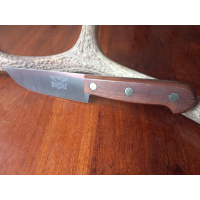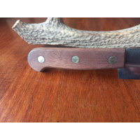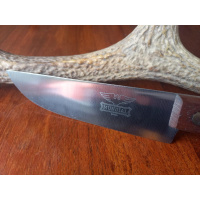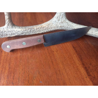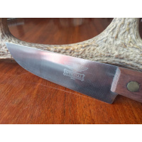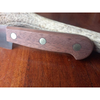 Cuchilla multiuso marca MUNDIAL Industria Brasilera. Hoja enteriza de acero al carbono con mango de dos cachas de madera dura , ensambladas mediante tres remaches de bronce. Se encuentra nueva sin ningún tipo de uso, sólo se le limpió la grasa de fábrica, es de un viejo almacenaje de un ramos generales que ya cerró. Sus medidas son: Largo total 270 mm, largo hoja: 150 m, altura hoja:38 mm, espesor 2 m y largo del filo 163 mm. Levantan muy buen filo y lo conservan muy bien.