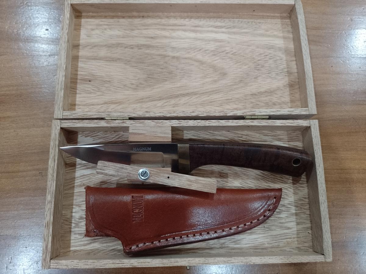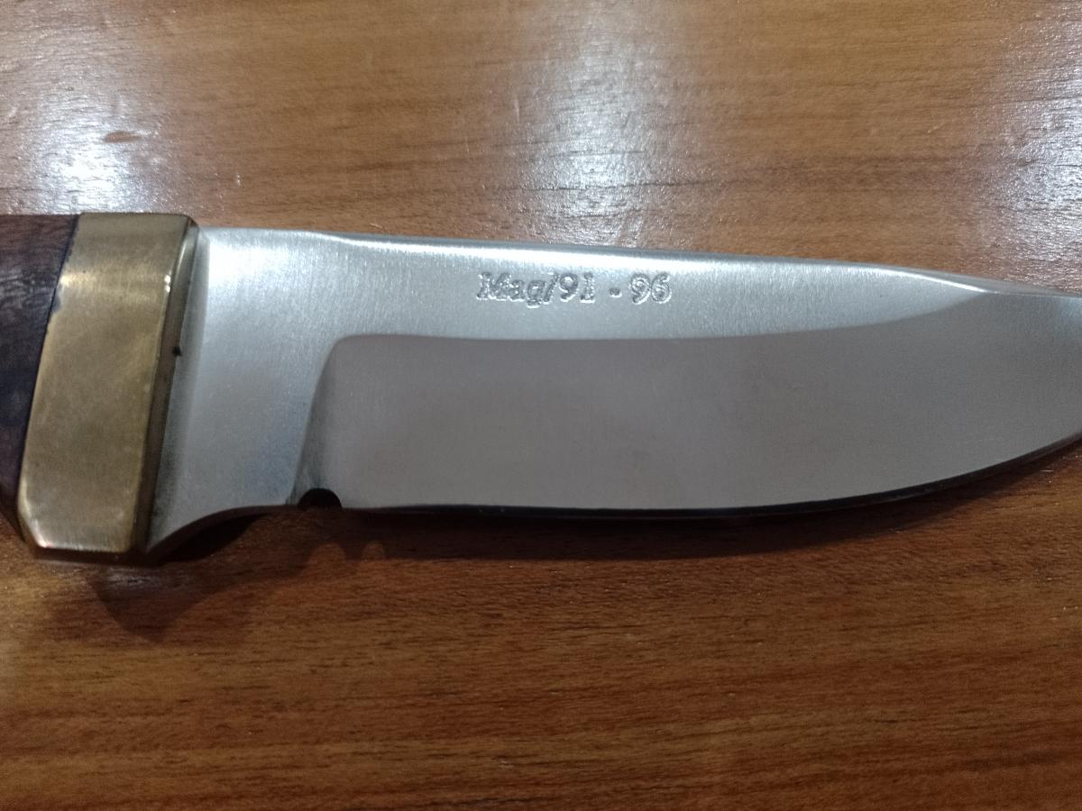 Realizado por los artesanos Perpigña y Porcel de Rosario. Edición de 100 ejemplares de La Revista Magnum para la primer feria Armas del año 1991. Largo de la hoja 10 cm. Espesor 4 mm. Largo total 21 cm. Nuevo sin uso, pertenece a una colección... Cualquier duda consultar. No deje de ver mis otros artículos publicados.