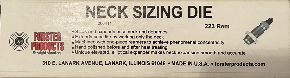 DIES MARCA FORSTER  CALIBRE .223 REMINGTON. DE 1 CUERPO (SOLO NECKSIZING), EN CAJA ORIGINAL, CON MANUALES Y GARANTIA. NUEVOS A ESTRENAR.