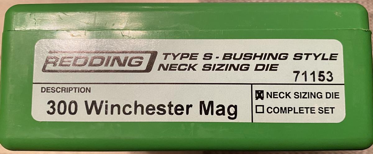 DIES MARCA REDDINGCALIBRE .300 WINCHESTER MAGNUM . DE 1 CUERPO (SOLO NECKSIZING PARA BUSHING), EN CAJA ORIGINAL, CON MANUALES Y GARANTIA. NUEVOS A ESTRENAR.