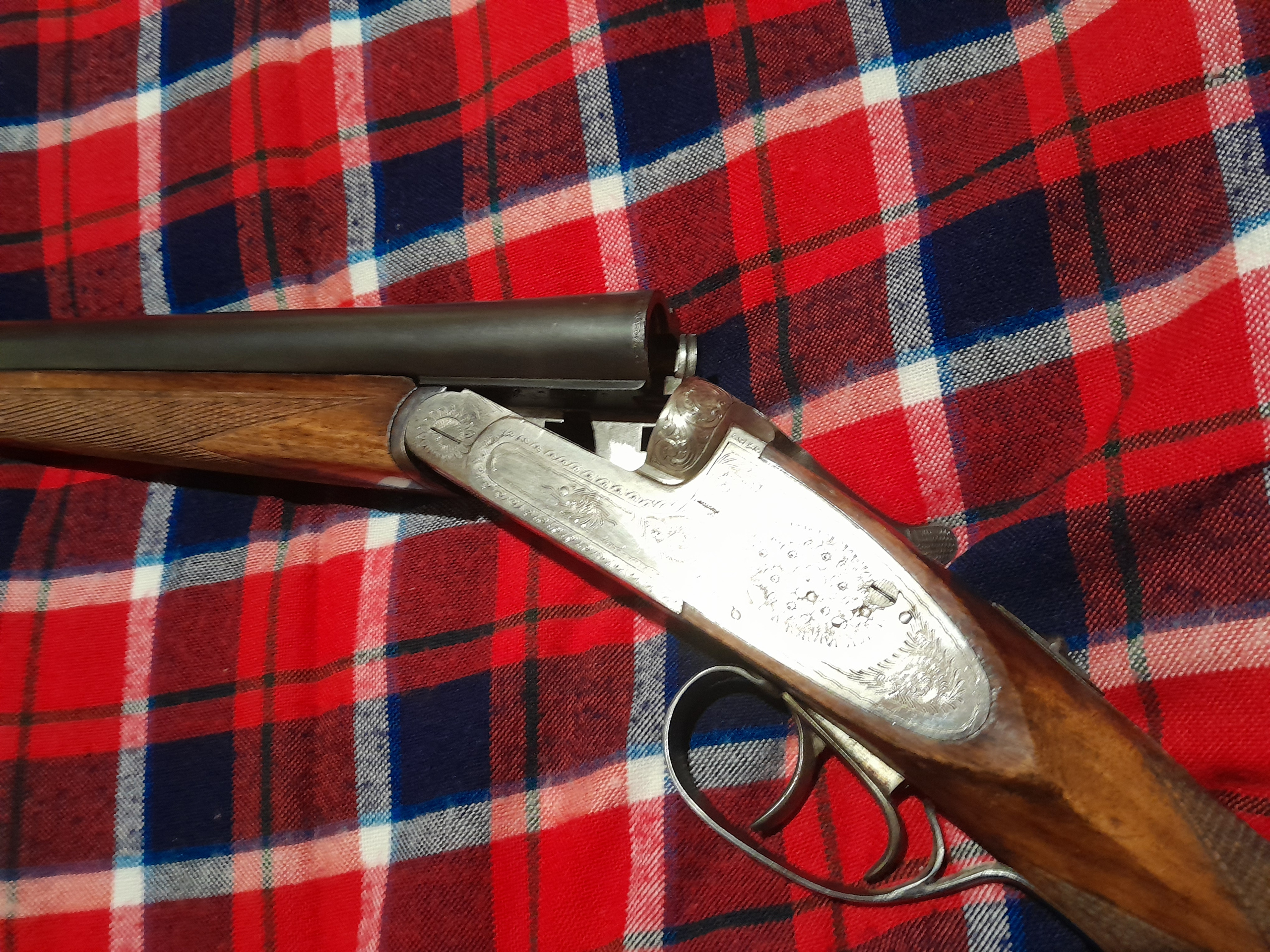 Escopeta viuda e hijos de Juan José Sarrasqueta cal. 16, yuxtapuesta, pletina larga, culata inglesa. Impecable estado.