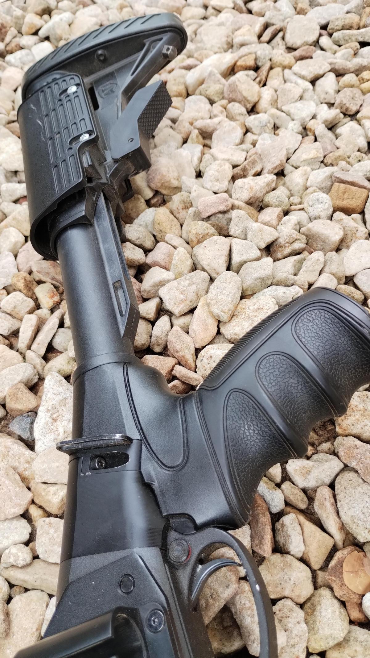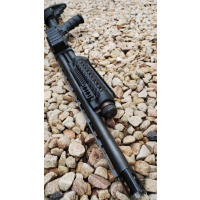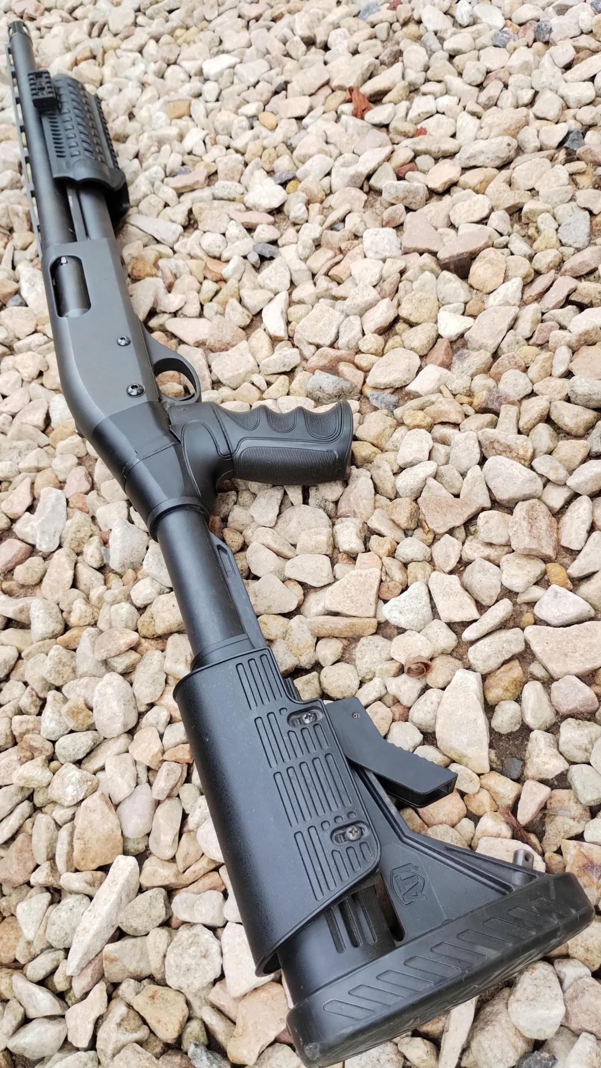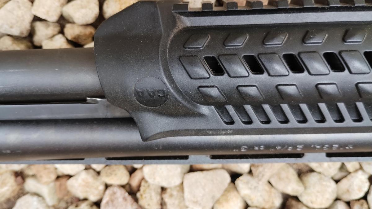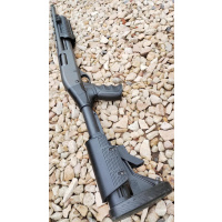 CON CULATA RETRACTIL Y CARRILLERA REGULABLE MARCA "ATI" Y CHIMAZA TACTICA MARCA "CAA", BOCACHA, PORTA CORREAS Y PICATINNY. EN EXCELENTE ESTADO! CAÑON DE 18"