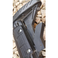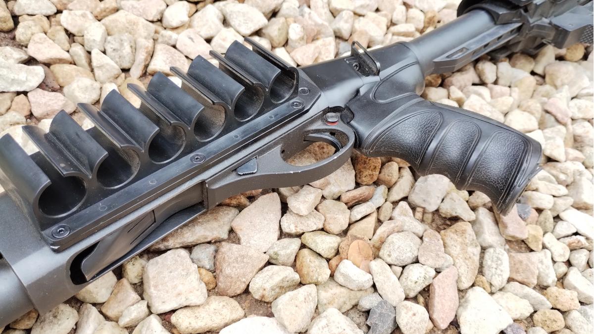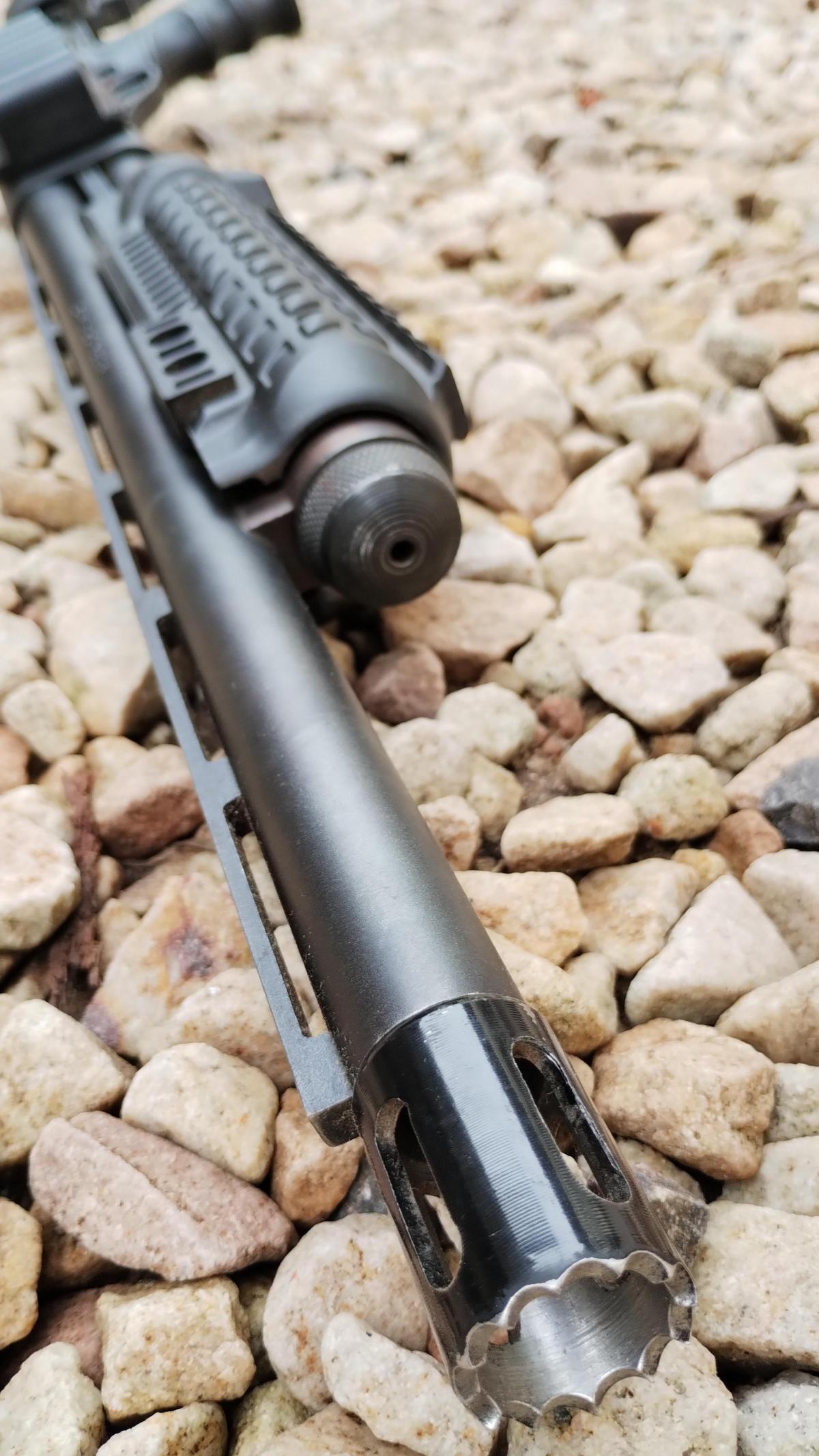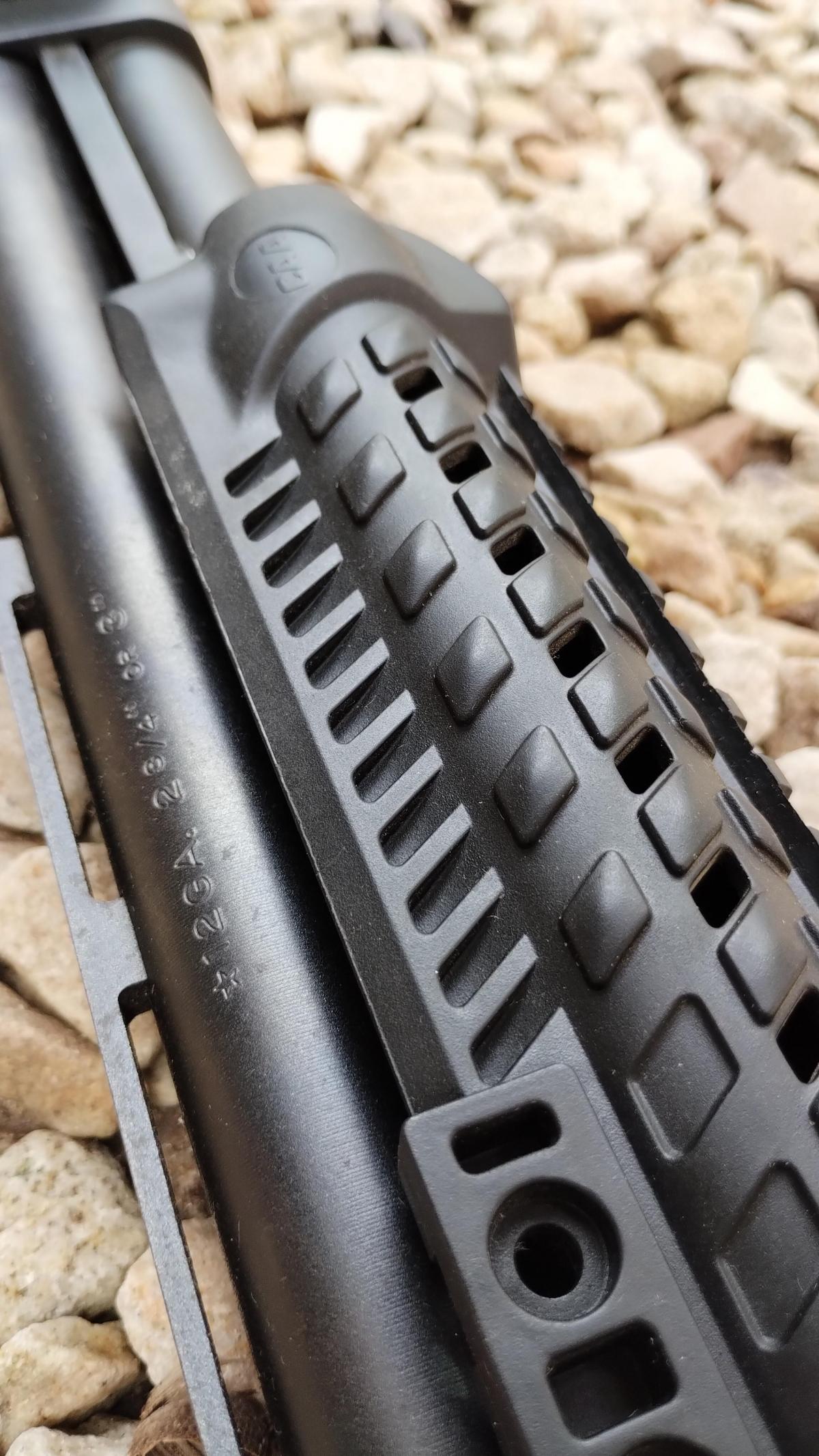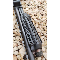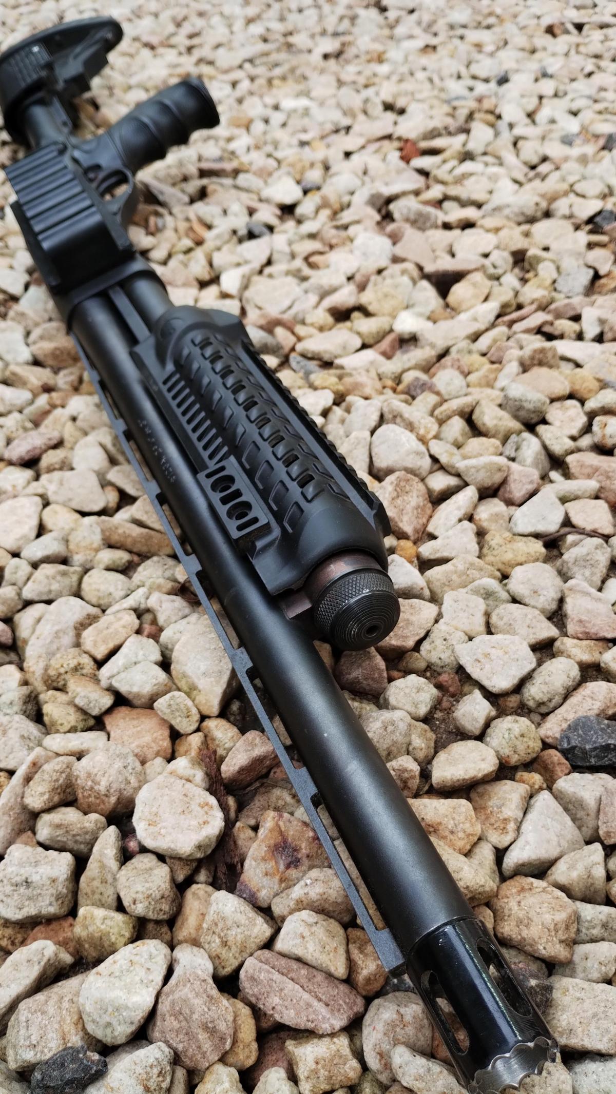 CON CULATA RETRACTIL Y CARRILLERA REGULABLE MARCA "ATI" Y CHIMAZA TACTICA MARCA "CAA", BOCACHA, PORTA CORREAS Y PICATINNY. EN EXCELENTE ESTADO! CAÑON DE 18"