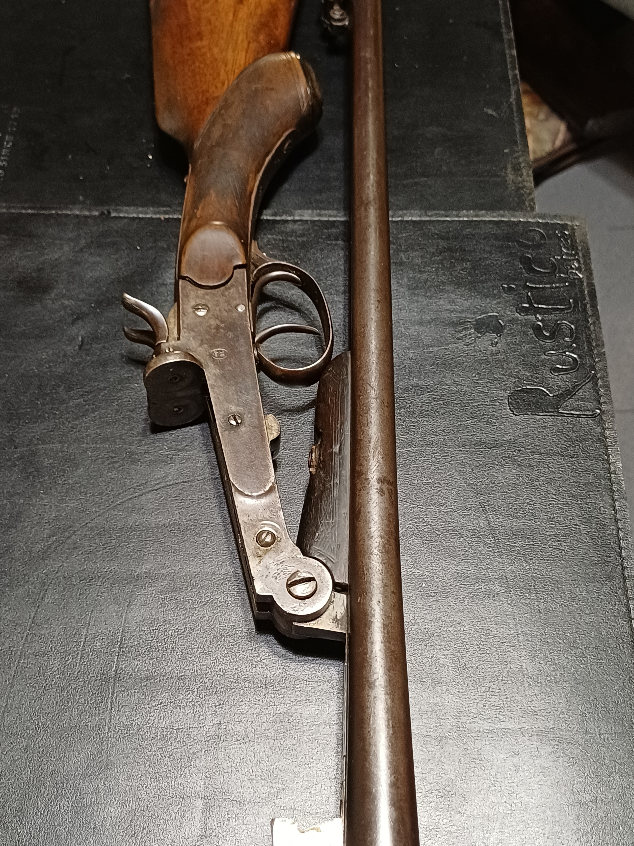 Escopeta h. Adrian dos caños yustapuesta 12 usaba. Cañones 76cm. En buen estado.Martillos ocultos. No tiene cuim. Se transfiere a legítimos usuarios en reparación central.