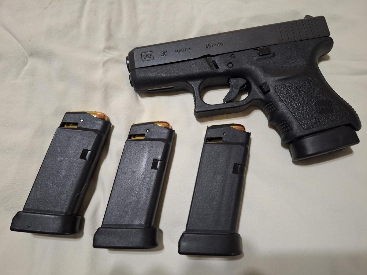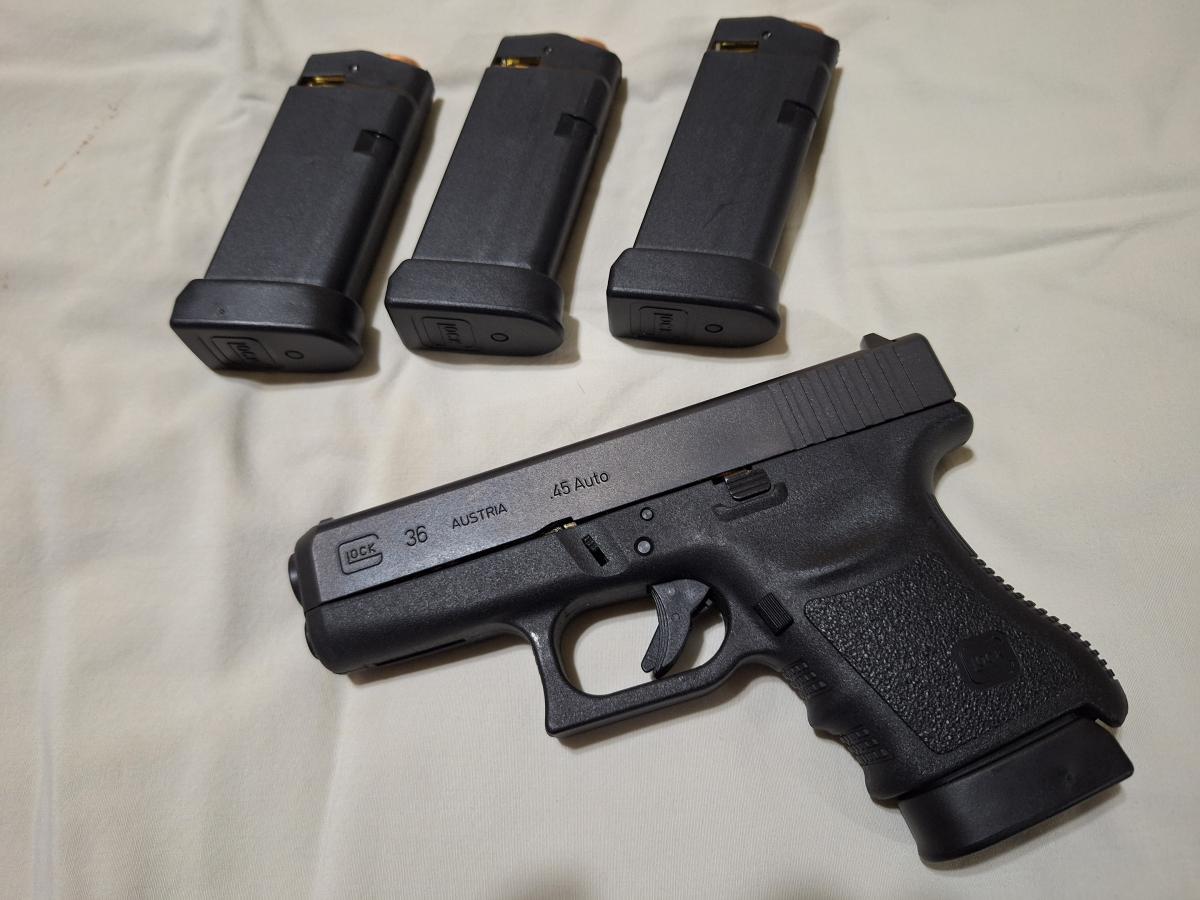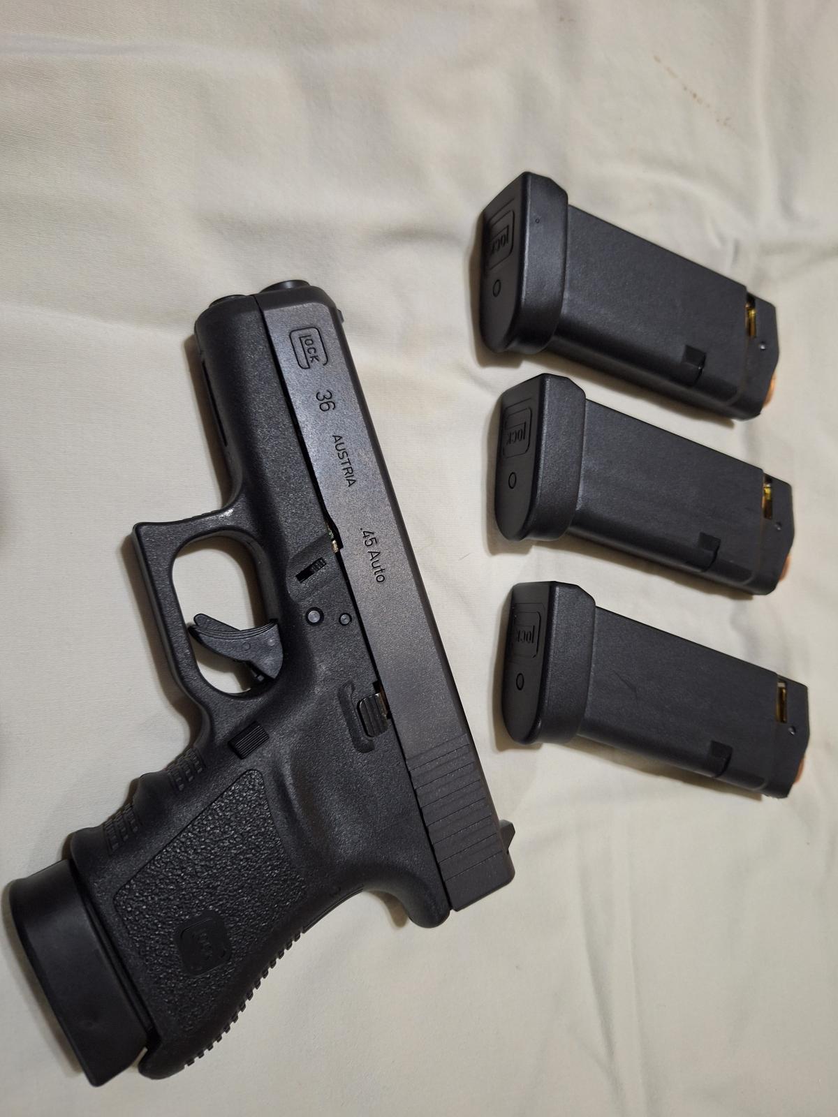 Pistola Glock 36, calibre .45acp, sub-compacta, cargador monohilera, estado impecable! (solo 200 disparos efectuados)