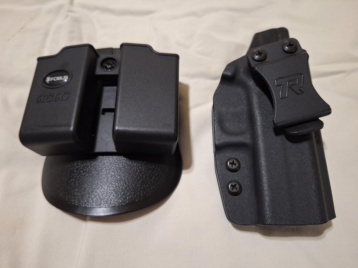 Se entrega con 4 (cuatro) cargadores, una pistolera interna de Kydex marca Concealment Holsters y un porta cargadores doble marca Fobus.