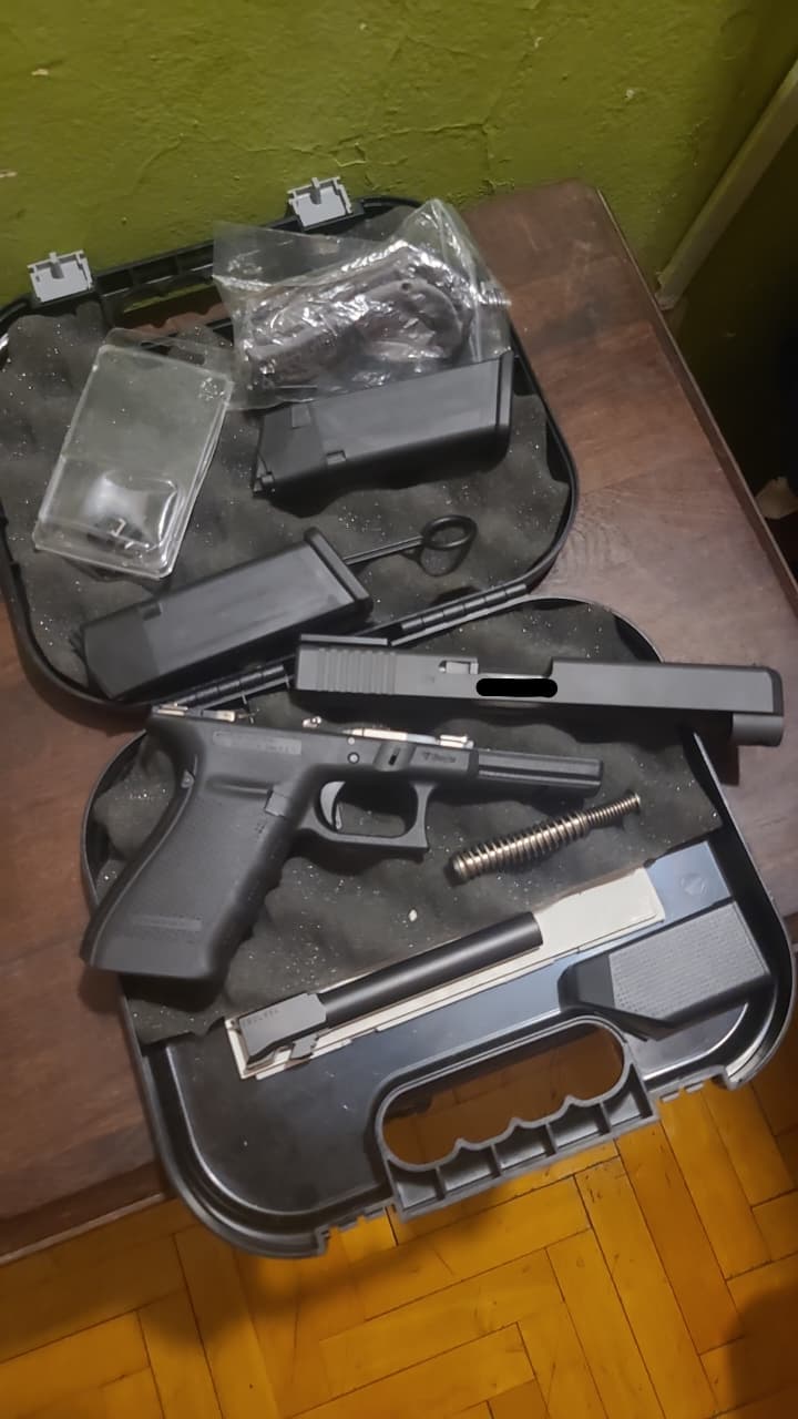 Vendo Glock 41 (Corredera Larga), Generación 4, en calibre .45 ACP, con placa adaptadora colocada, incluyo alza regulable , 2 cargadores de 13 disparos cada uno, lomos intercambiables y maletin de transporte. Posee menos de 500 disparos entre dueño anterior y yo.