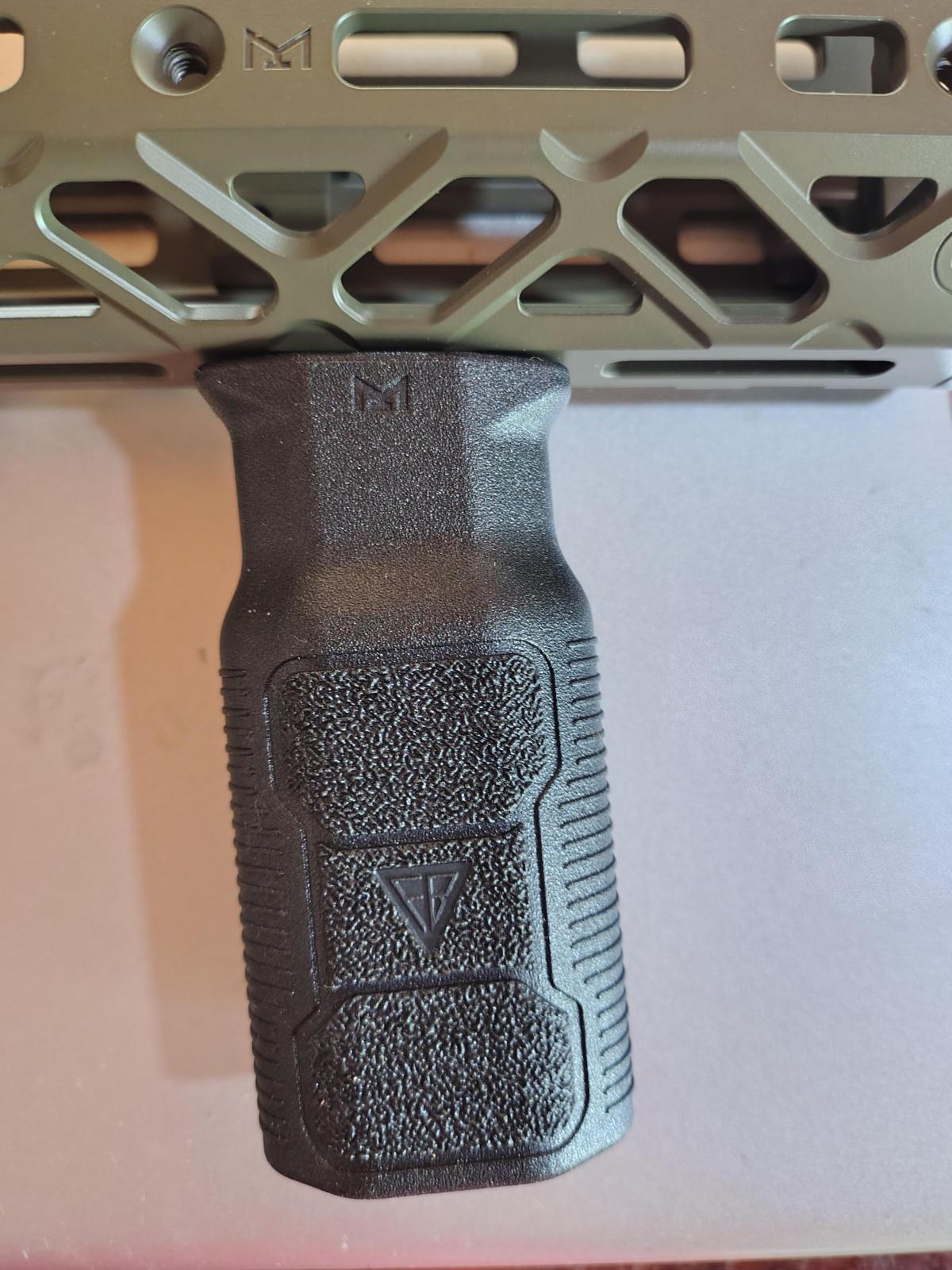 Grip vertical delantero m lok polimero polaco radom . Para la plataforma de fusil militar MSBS "GROT", esta empuñadura delantera hueca, de polímero, compatible con MLOK, presenta una ligera inclinación(utilizable ambos sentidos) Exelente tacto. Longitud 8.4cm .Nuevo.