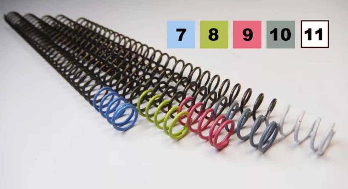 KIT DE 5 RESORTES DE GUIA RECUPERADORA DE 7, 8, 9, 10 y 11 LB PARA PISTOLAS COLT 1911, FM 1927, NORINCO, TANFOGLIO Y TODOS SUS CLONES MARCA NICK TAYLOR