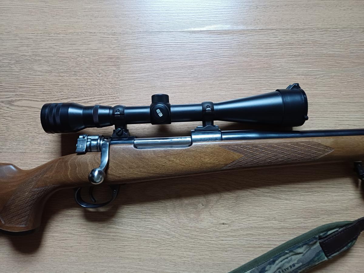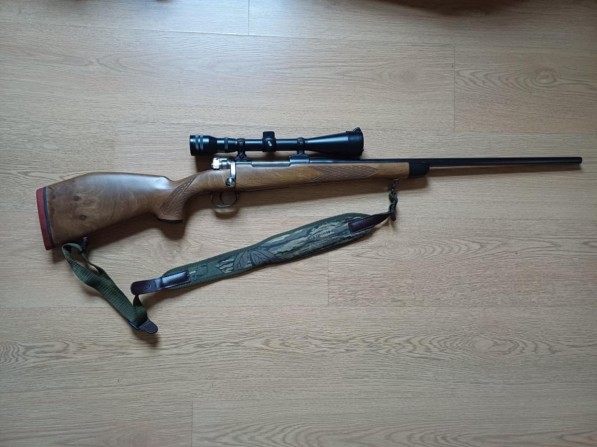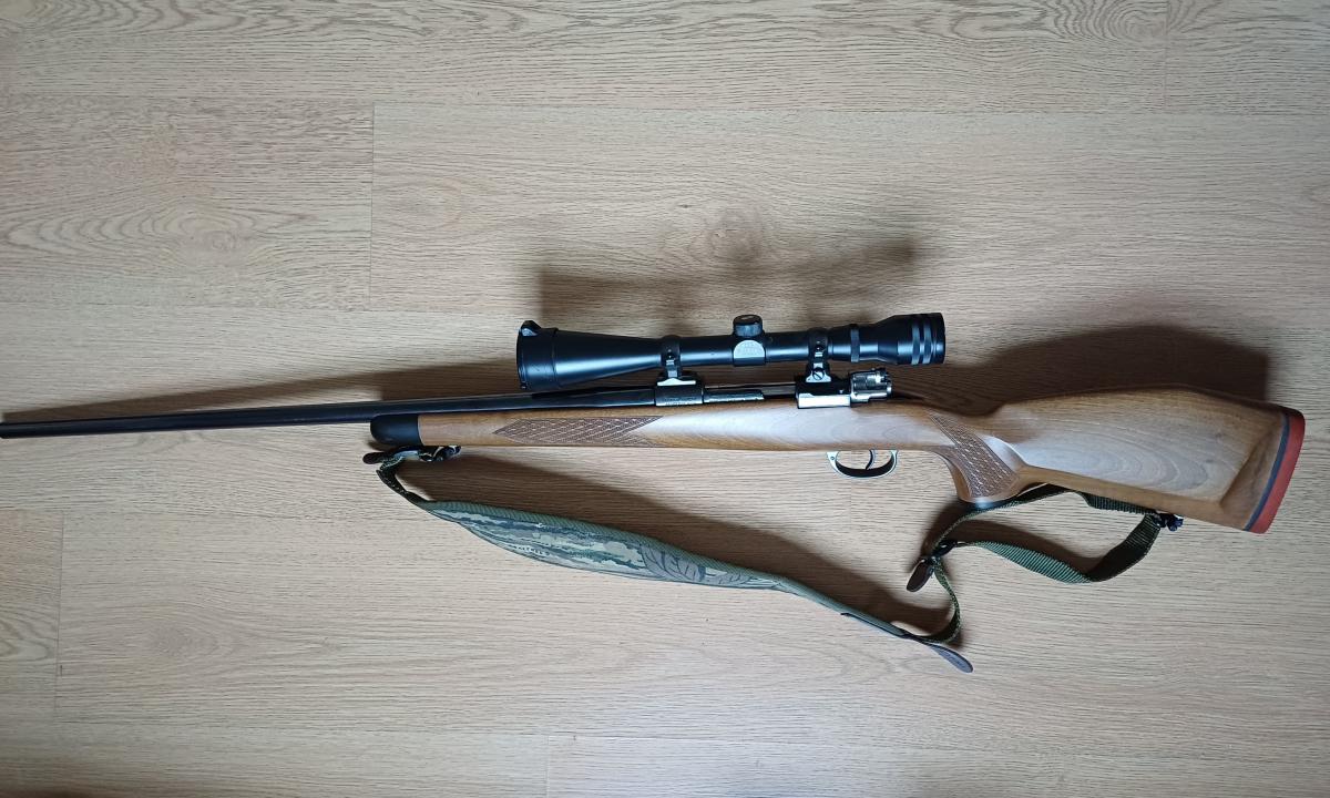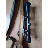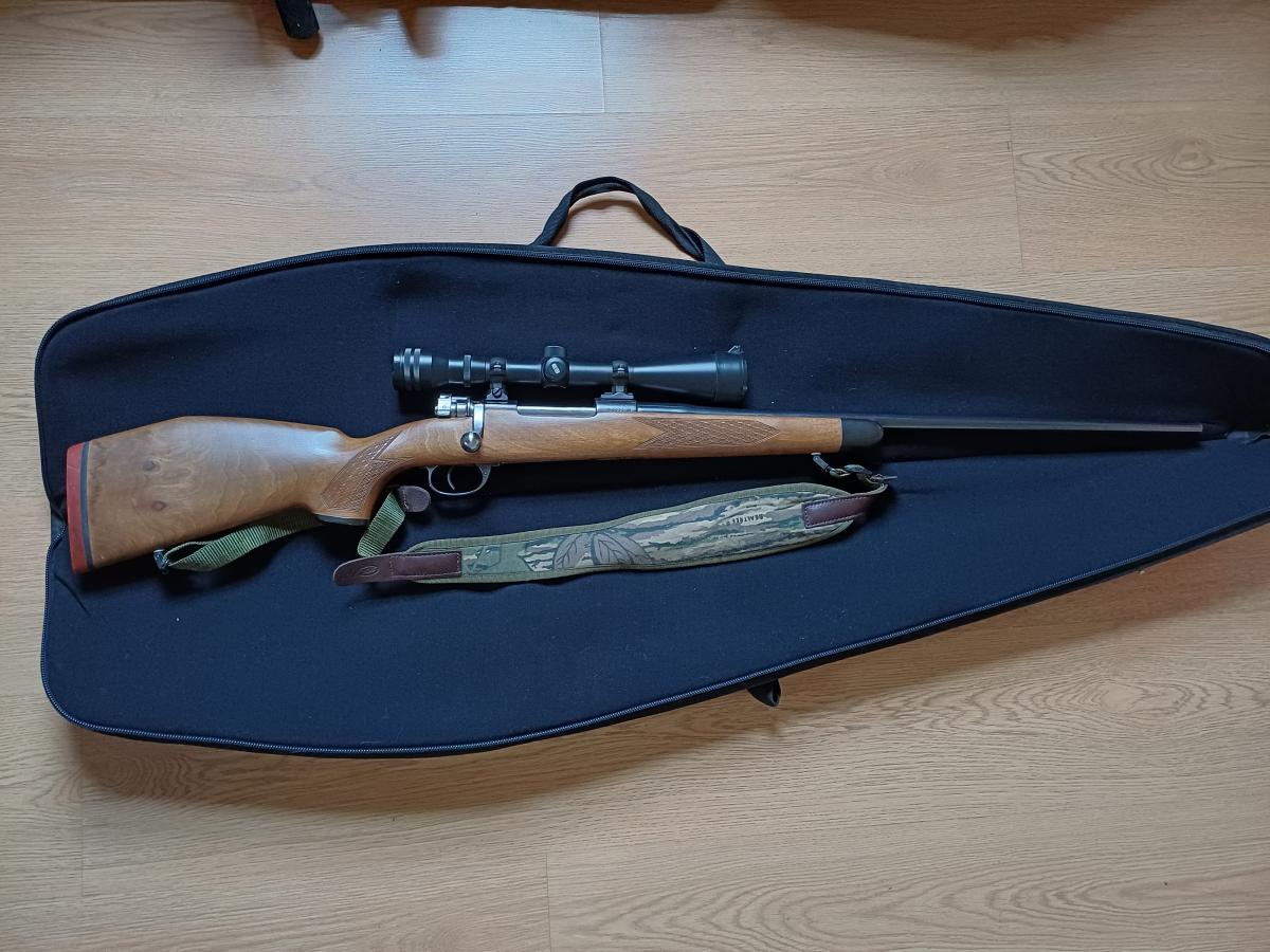Fusil Mauser Modelo Argentino 1909 transformado a uso deportivo. Calibre 300 PLG WINCHESTER MAGNUN. Con mira telescópica marca Meopta 6x42 impecable. Fina culata de madera, correa de transporte y funda acolchada