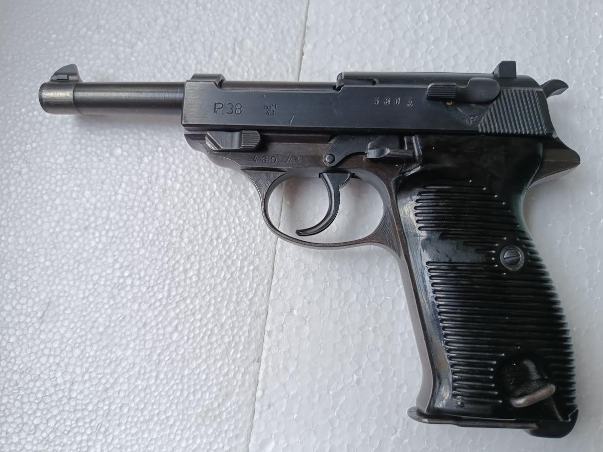 Pistola semiautomatica cal 9mm , modelo P38 marca Mauser , 100% original pavon y piezas , Fabricada en 1943, solo 2000 armadas por Mauser ese año,no es una ensamblada de partes de armas como las spreewerke y otras de los ultimos meses de la 2nda guerra. Tienen todos los waffenampt correspondientes a esta fabrica y año, mismo numero en frame y corredera.Cañon flamante con estrias como nuevas , sin picaduras ni incrustaciones . el arma tiene el 99% del pavon original perfectamente conservado sin decolaracion ni oxido por ningun lado. Envio a cargo del comprador despues de pagada y metido el tramite en ANMAC .Pago en billetes americanos cara grande o al valor blue vendedor del dia de la operacion. No tiene Cuim , esta en mi poder desde hace 30 años y registrada en mi coleccion. No acepto permutas