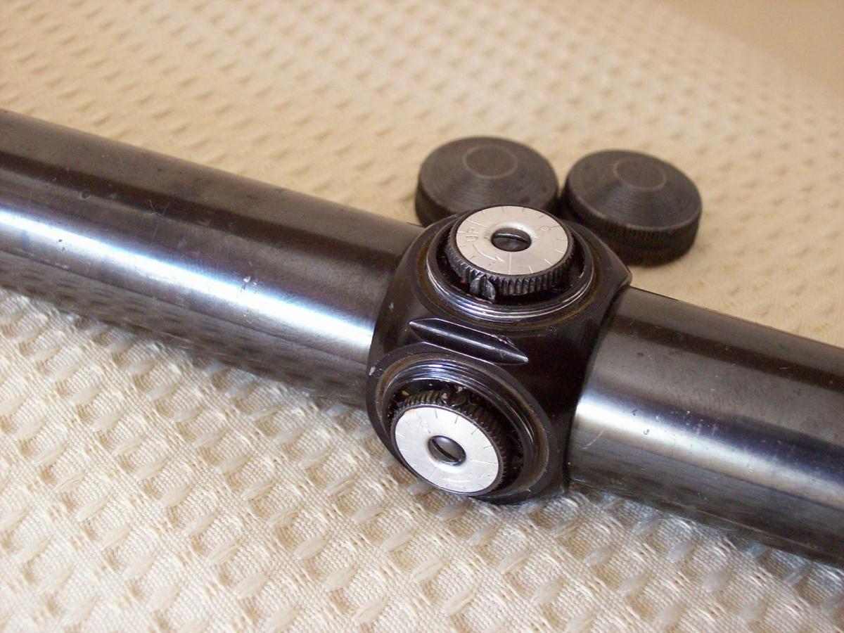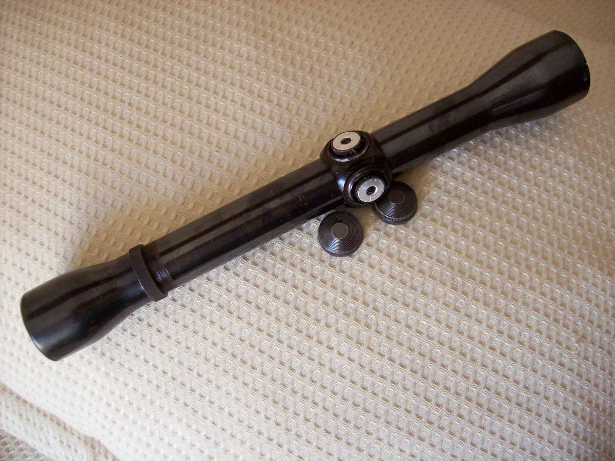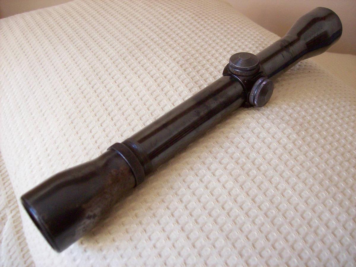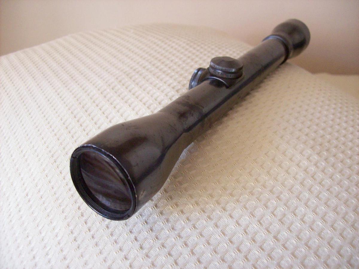 Mira telescópica WEAVER K4-C3 Made in El Paso, Texas, USA de 4X33,6 con Retículo Zeiss #2 auto centrado. Fabricada con tubo de una pulgada (25,4mm) en una sola pieza totalmente de acero, brindándole una gran fortaleza y perfecto centrado de sus lentes. Tiene torretas de calibración vertical y horizontal con marcados “Clicks” . El ocular (33 mm de diámetro su lente), se enrosca/desenrosca para corregir las dioptrías. Cuando ya se encuentra adaptado a la agudeza visual del usuario, se ajusta mediante una contratuerca. En la parte izquierda del tubo y bajo la torreta de altura tiene estampada bajo relieve la leyenda: “ WEAVER K4-C3 USA”. Es una mira de la década del 70, fabricada en El Paso, Texas bajo los más estrictos controles para su época. Estéticamente se halla en un estado regular, su empavonado tiene faltantes. En cuanto a óptica y mecánica, se halla totalmente operativa. Tiene, pequeñas abolladuras en la campana del objetivo. Su transparencia y definición son buenas. Largo total de la mira 29,7 cms. Diámetro campana objetivo: 39 mm y del ocular: 38mm. La última foto corresponde a un folleto de publicidad del año 1969. Allí se puede observar los precios de la miras WEAVER nueva en aquella época y varios detalle técnicos muy interesantes.