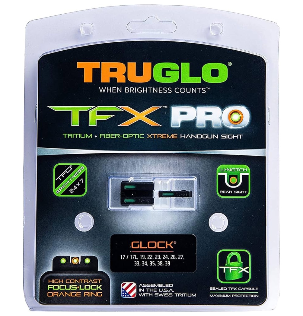 MIRAS DE TRITIUM Y FIBRA OPTICA MARCA TRUGLO TFX PRO PARA PISTOLAS GLOCK. NUEVO A ESTRENAR.