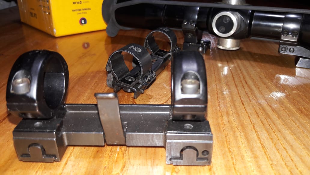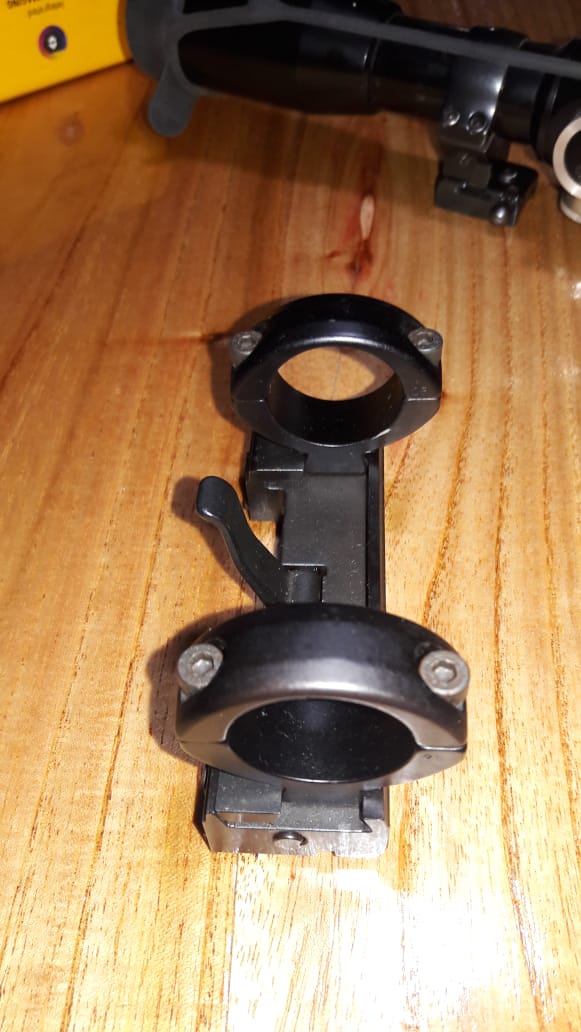 Se vende excelente montaje aleman, sistema quita y pon mediante palanca lateral, marca HECKLER Y KOCH, para fusiles y carabinas de la misma marca, en varios modelos fabricados tanto para calibres de alto poder, para caza mayor (30-06 Sprf., .308 winchester, etc.) y de bajo poder, para caza menor ( .22 LR y .22 Magnum).-