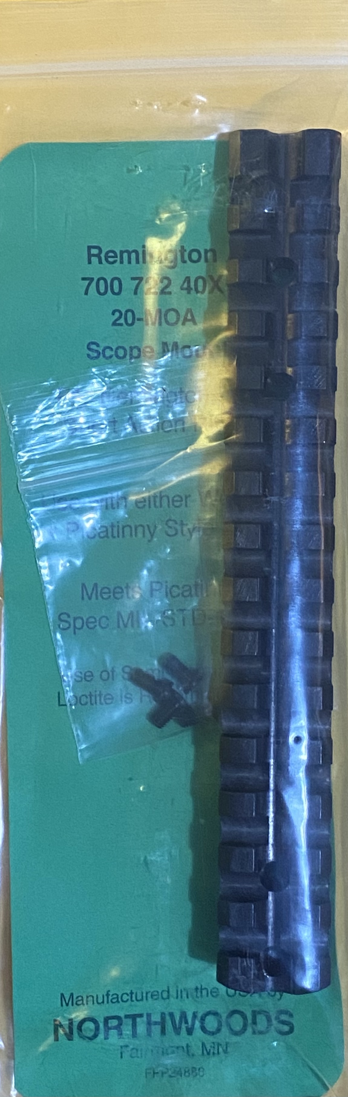 MONTAJE DE ALUMINIO DE 20 MOA MARCA NORTHWOODS. PARA REMINGTON 700 SA (ACCION CORTA), INCLUYE LLAVE, TORNILLOS. NUEVO A ESTRENAR.