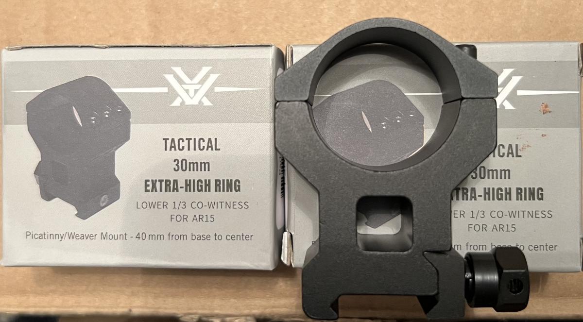 MONTAJE DE ALUMINIO CON ANILLAS DE 30mm EXTRA ALTAS (EXTRA HIGH) x 2 UNIDADES MARCA VORTEX. PARA RIEL WEAVER Y PICATINNY. NUEVO A ESTRENAR.