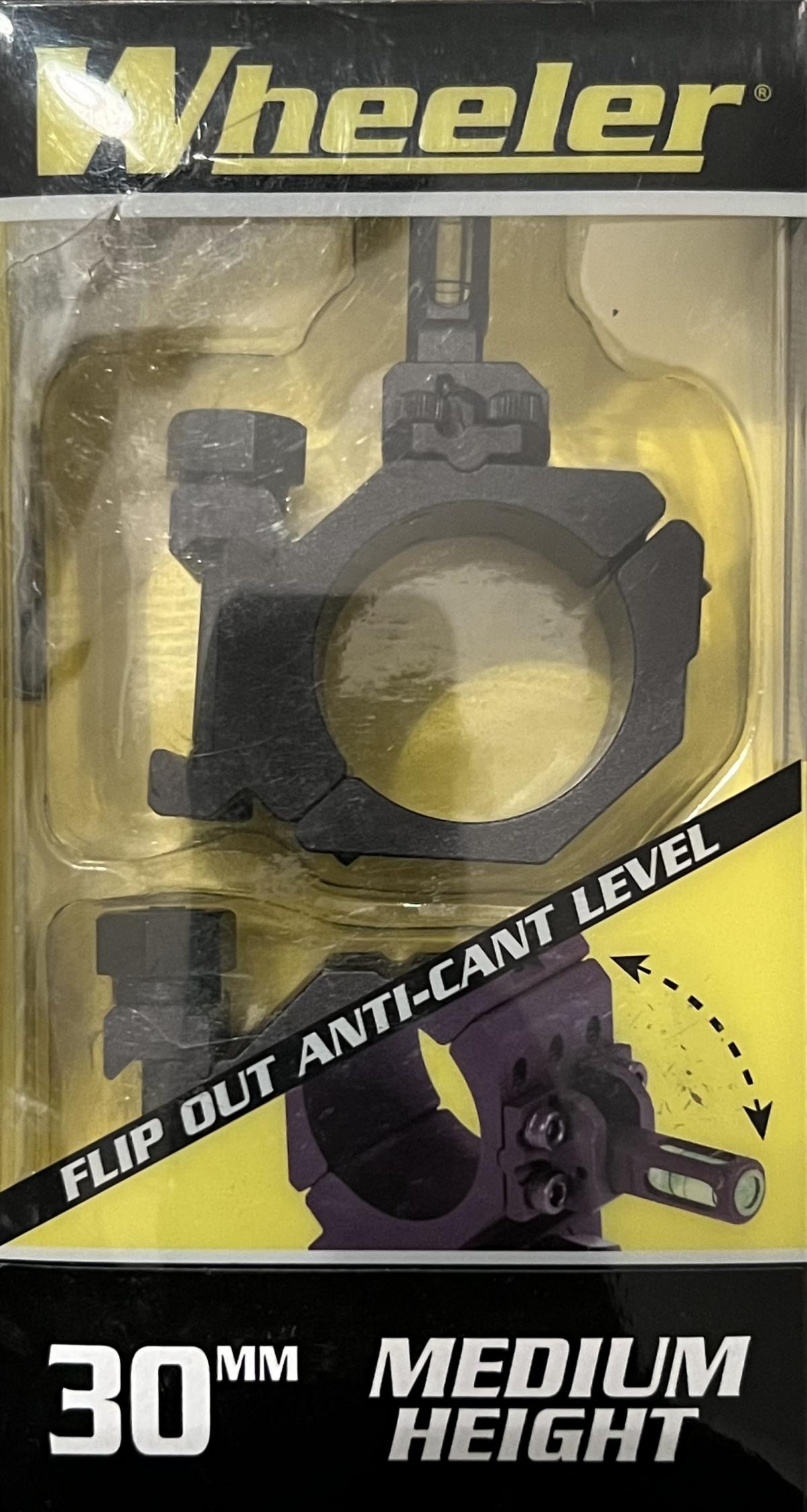 MONTAJE DE ALUMINIO CON ANILLAS DE 30mm MEDIAS x 2 UNIDADES MARCA WHEELER . CON NIVEL. PARA RIEL WEAVER Y PICATINNY. NUEVO A ESTRENAR.