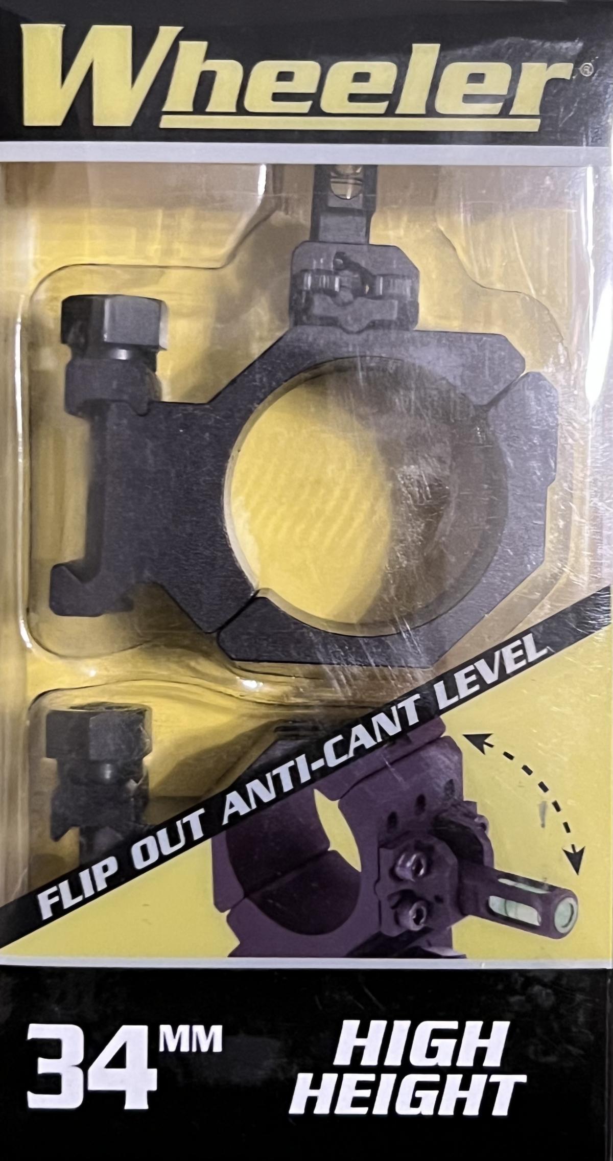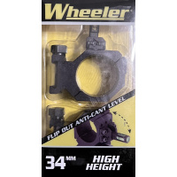 MONTAJE DE ALUMINIO CON ANILLAS DE 34mm HIGH (ALTAS) x 2 UNIDADES MARCA WHEELER . CON NIVEL. PARA RIEL WEAVER Y PICATINNY. NUEVO A ESTRENAR.