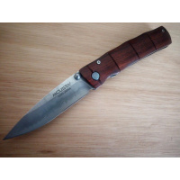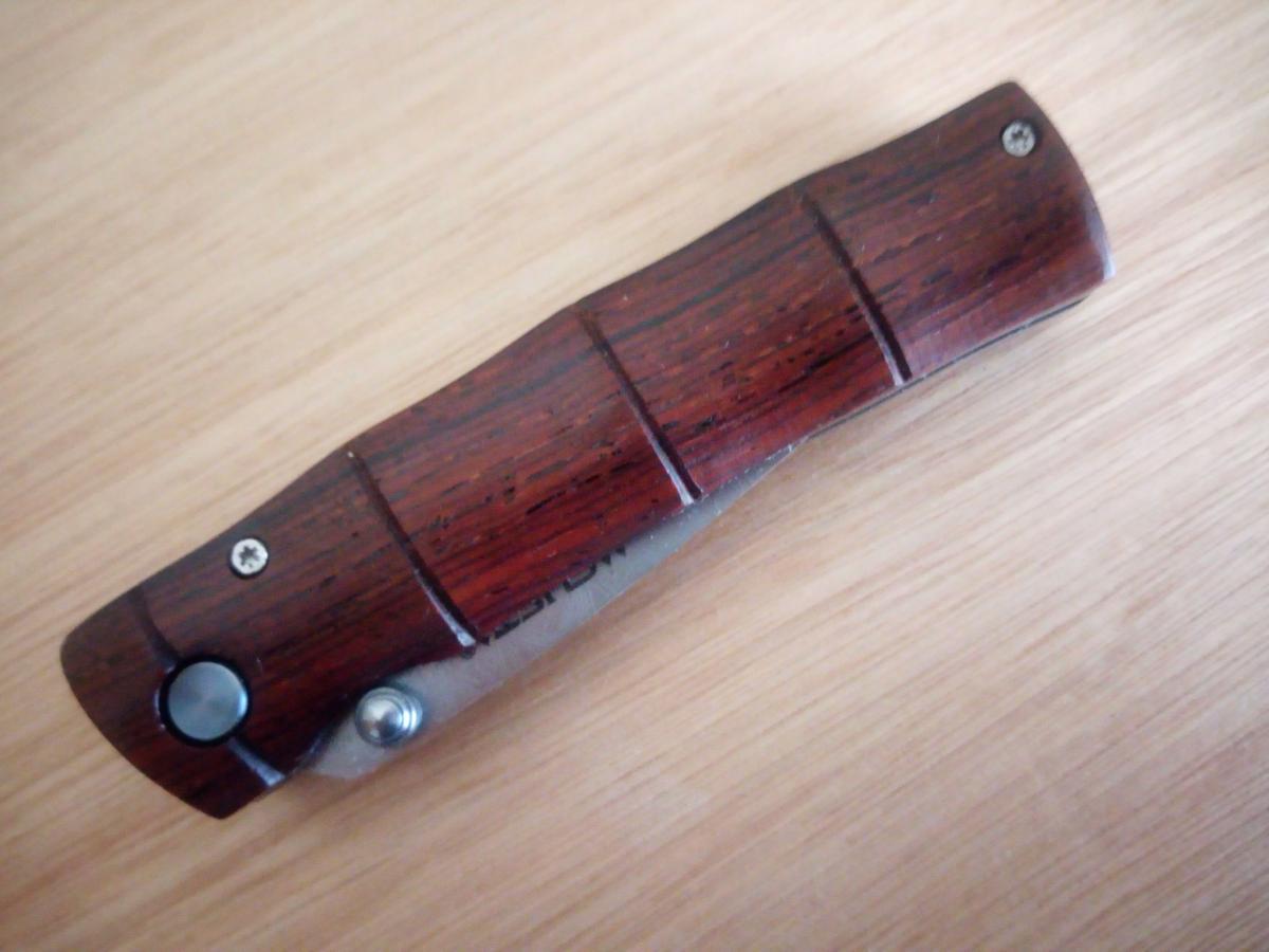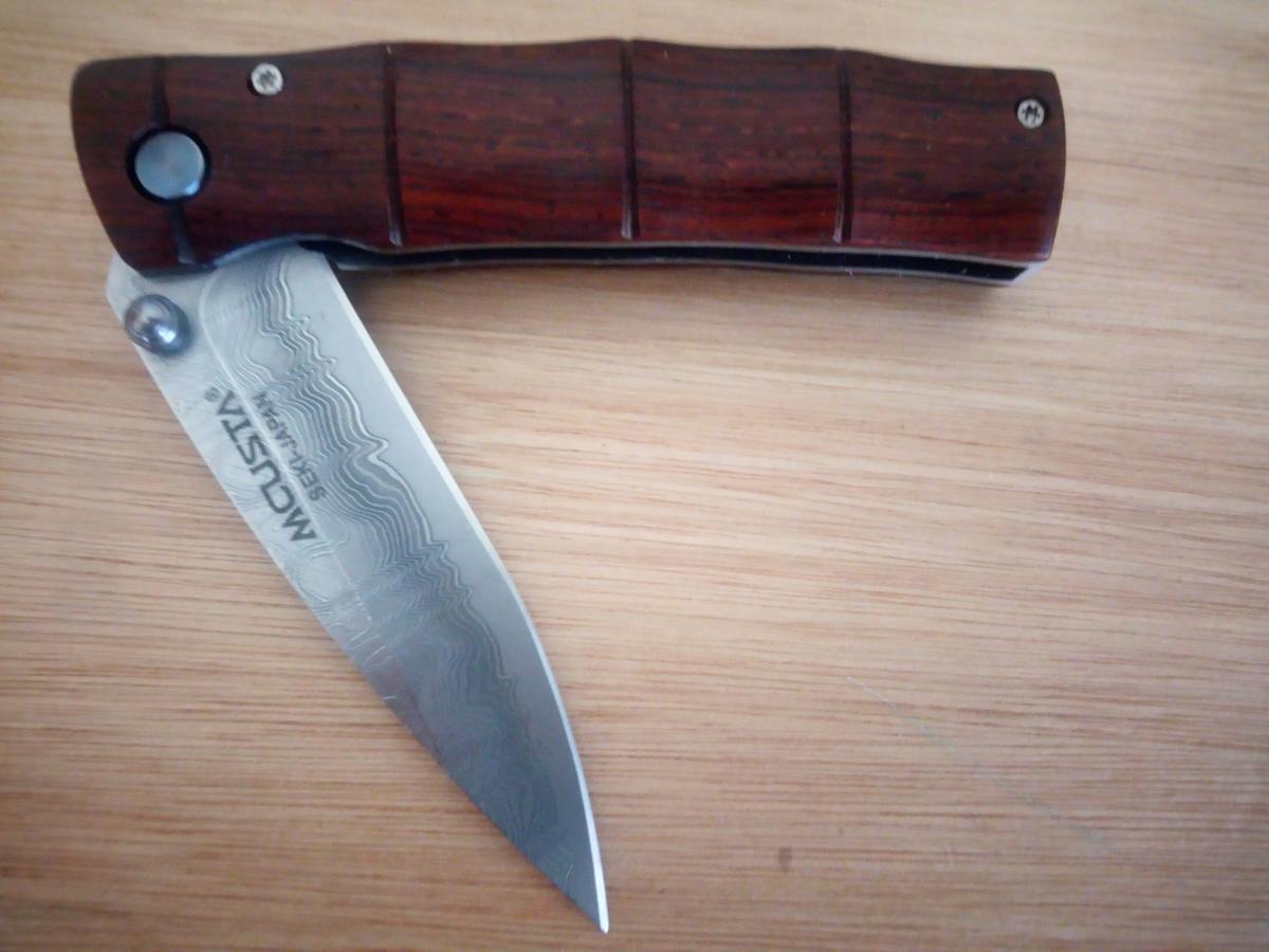 MCU74D NAVAJA Mcusta Hermoso cuchillo de Mcusta Japón. Cuenta con una hoja de damasco con acero de níquel damasco de 33 capas y un núcleo VG-10. Los mangos están hechos de madera de Cocobolo con un pasador de pivote anodizado. Incluye espárrago ambidiestro, mecanismo de apertura de una mano con forro de bloqueo. Cada cuchillo incluye una bolsa de Nishijin tejida decorativa. ¡Gran cuchillo pequeño!
