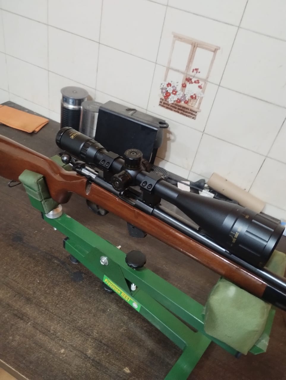 Carabina NORINCO JW con cargador de nueve tiros, muy buen estado, muy precisa(se puede probar en el TFLZ). Mira telescopica DIANA 6 a 24 x 50 reticulo iluminado.
