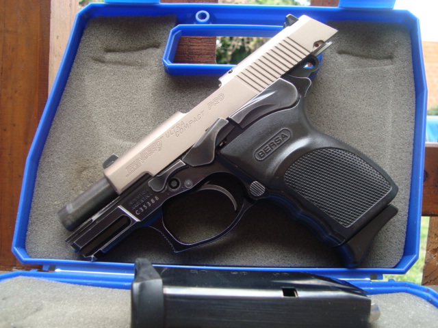 vendo pistola bersa ultra compac pro, ,duo tono calibre 9mm ,trae indicador de cartucho en recamara, con caja original de bersa, y 2 cargadores ,posee cuim ,no tiene rayas ni golpes esta impecable tal cual las fotos ,la pistola esta totalmente original ,de fabrica ,no se le modifico nada ,el nikelado de la corredera esta impecable ,como nuevo , ,la vendo xq no la uso ,tiene muy poco disparos hechos ,siempre catuchos magtech , ,no vendo a ningun personal de ninguna fuerza ,por ser muy engorroso el tramite ,solo vendo a legitimos usuarios civiles ,solo vendo a provincia de buenos aires y capital federal ,no vendo a ninguna provincia del interior,,del pais ,se entrega al iniciar el tramite ,a legitimos usuarios vigentes q posean x lo menos 1 arma corta ,.NO PERMUTO ,SOLO VENTA-