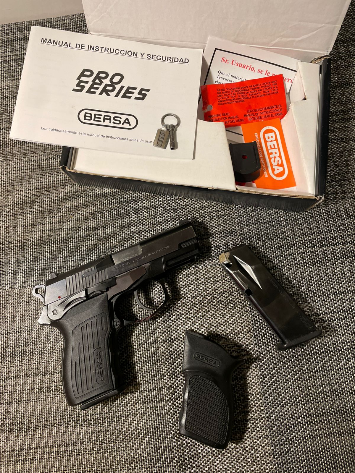 Pistola Bersa Ultra Compact Pro (13+1) viene con su caja original, manual, garantía, llave. Posee sus 2 cargadores originales cacha original y nueva de TPR. Pocos disparos (no debe llegar a 100) fue portada. Serie D