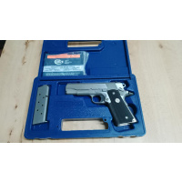 Pistola COLT, Mod MK IV Serie 80 COMBAT COMMANDER.Acero inoxidable, usada en excelente estado en su caja original con cargador de 8 disparos y su manual correspondiente. Con CUIM, se entrega contra la presentacion de la nueva credencial digital.