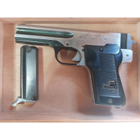 Pistola semiautomatica Dos Leones. Calibre .22 PLG. Un solo cargador. Muy buen estado, el unico detalle es la cacha derecha que se encuentra rajada tal cual se ve en la fotografia. Posee CUIM y la entrega se hace al ingresar los tramites en la ANMAC central. Otras delegaciones y/o gestores, la entrega es contra tenencia a nombre del comprador. Dolas billete. No acepto permutas. No deje de ver mis otros articulos.
