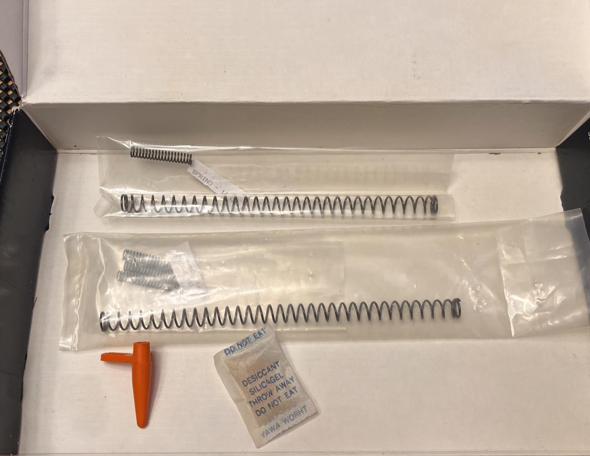 pasa por nueva, inmaculada pistola de acero inoxidable Smith wesson  completa con caja manuales y dos cargadores, apenas 7 disparos realizados. Pistola de los años 90 con sus resortes de diferentes lbs sin usar.