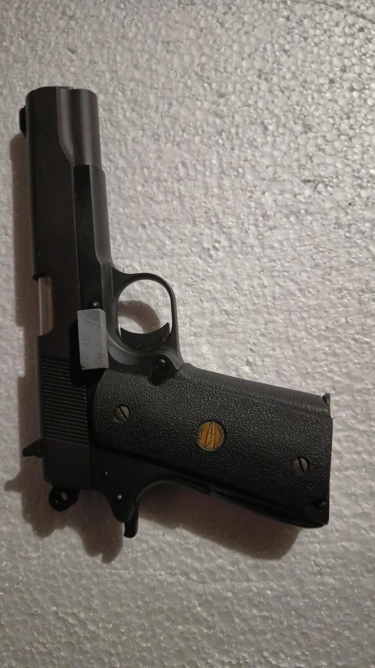 Pistola semiautomatica THOMPSON AUTO ORDENANCE modelo 1911 A1 cal 45 ACP cañon de 5 pulgadas simple accion . Como NUEVA , cargador adicional , totalmente original de fabrica sin detalles y en su caja . Valor 1490usd . Pago en billete americano cara grande o en pesos al valor del blue del dia de la operacion por transferencia bancaria en cuenta a designar. Envio a cargo del comprador