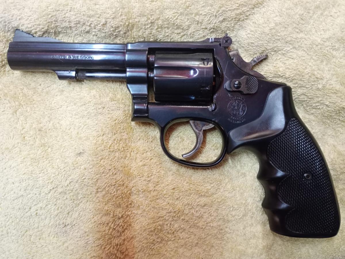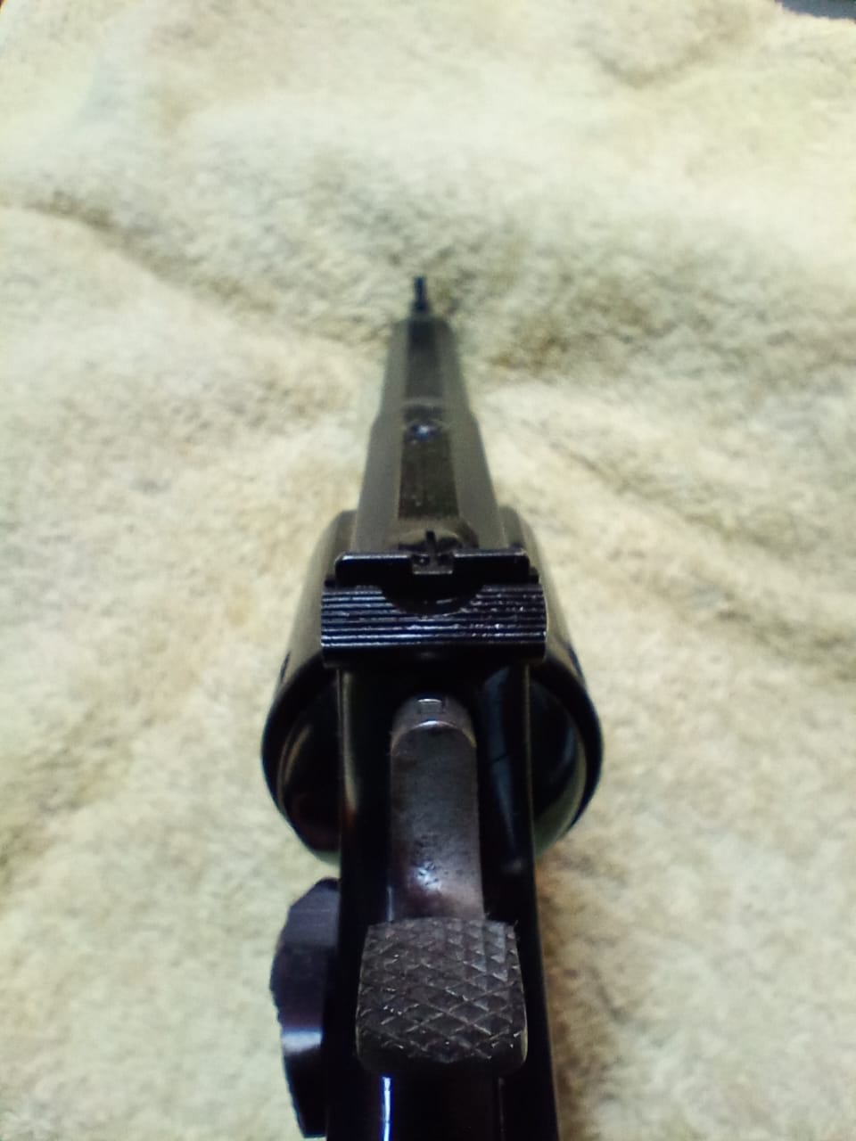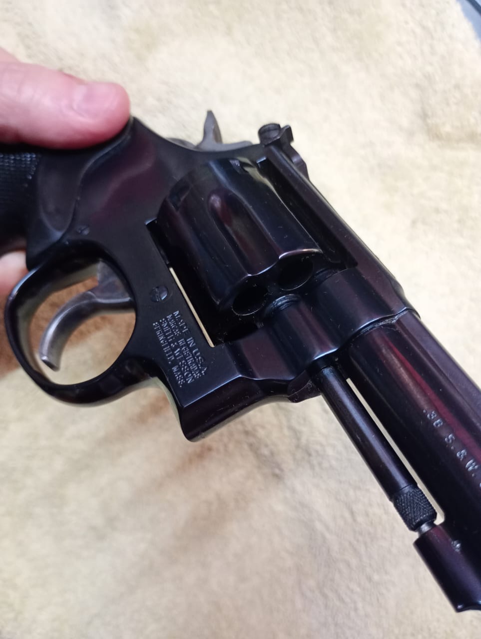 Revolver Smith & Wesson modelo 15 cal. 38 spl. 4" largo de cañon. impecable estado original, sin signos de haber sido disparado.