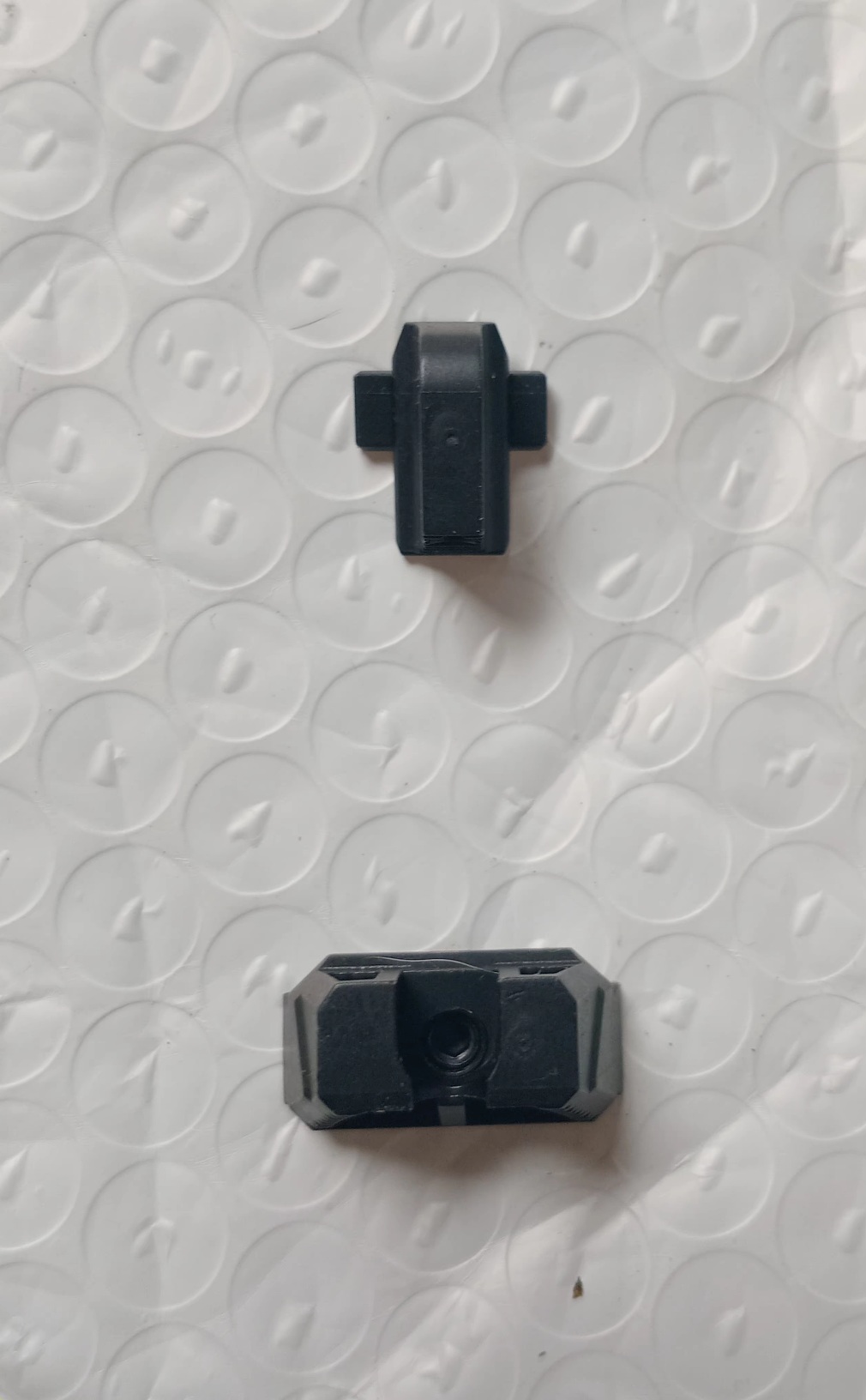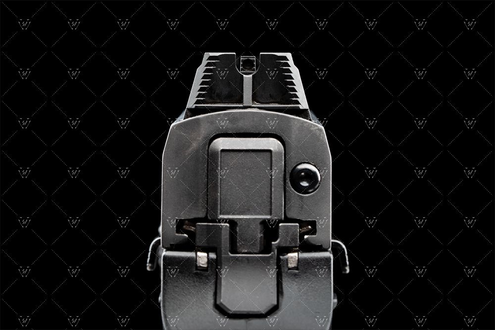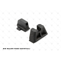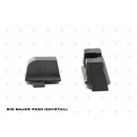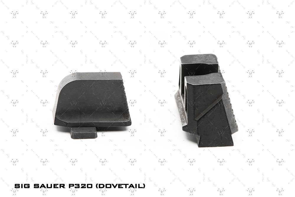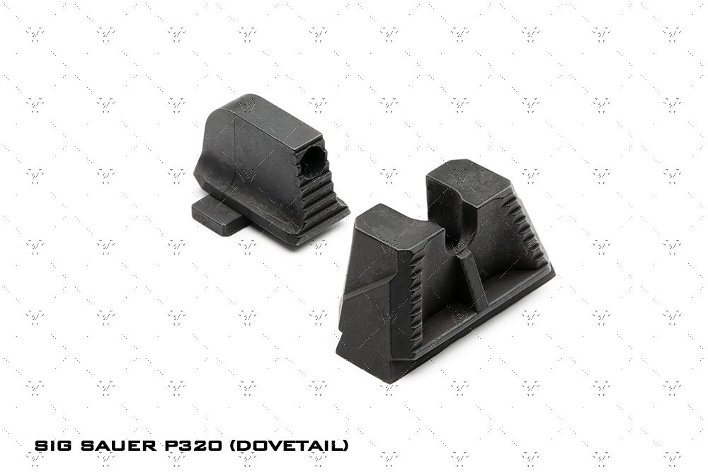 brindan una imagen de mira elevada para una configuración de pistola con punto rojo o supresor. Las miras delantera y trasera se ubican en una posición de co-testigo absoluta con un punto rojo montado en la corredera. Diseñadas para ayudar con la alineación adecuada de la mira y mantener los ojos del tirador enfocados, hay luz natural que se ve en ambos lados de la mira delantera entre la mira trasera con muesca en U. Los escalones colocados en la parte trasera de ambas miras ayudan a inclinar y reducir los reflejos o destellos no deseados de sus ojos. Líneas y ángulos diseñados para usar reflejos de luz natural y juego de sombras para mantener la vista del usuario alineada y enfocada en el objetivo. La mira trasera está diseñada con un ángulo negativo para que el tirador vea la pared trasera lo más oscura posible para brindar un enfoque total en las miras. La línea que corre por el medio de la mira trasera está allí para captar la luz desde arriba y crear una ilusión de "línea" en la que el tirador puede usarla para ayudar a apuntar. La mira frontal se puede pintar del color que prefiera el usuario o se puede usar pintura que brille en la oscuridad para personalizar el aspecto y el uso de las miras. Fabricadas en acero inoxidable endurecido SUS630