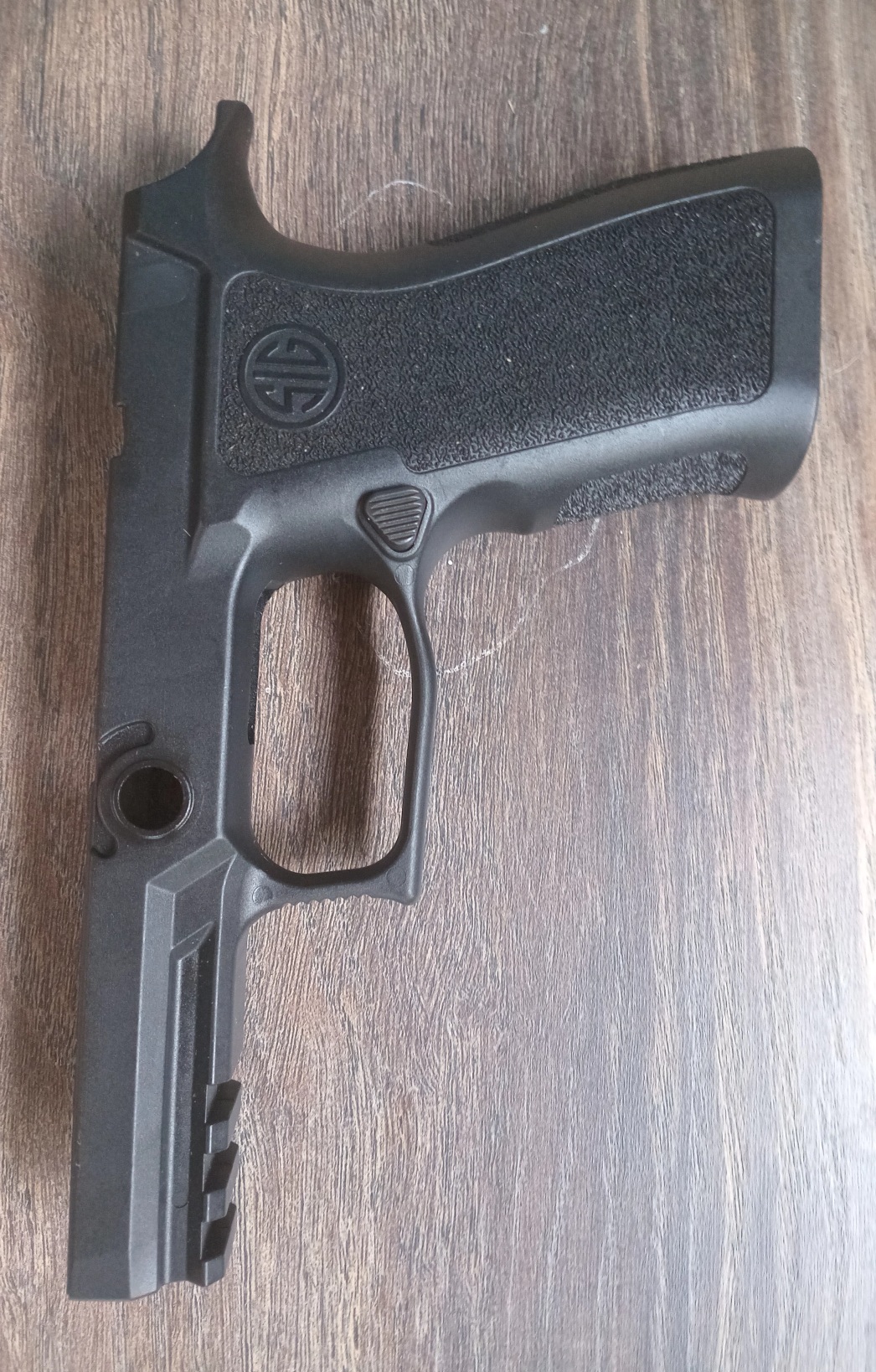 Modulo empuñadura grip sig sauer X para las p320 (para las que poseen seguro hay que hacer el corte para su accionamiento el area formato a recortar esta marcado en el frame)
